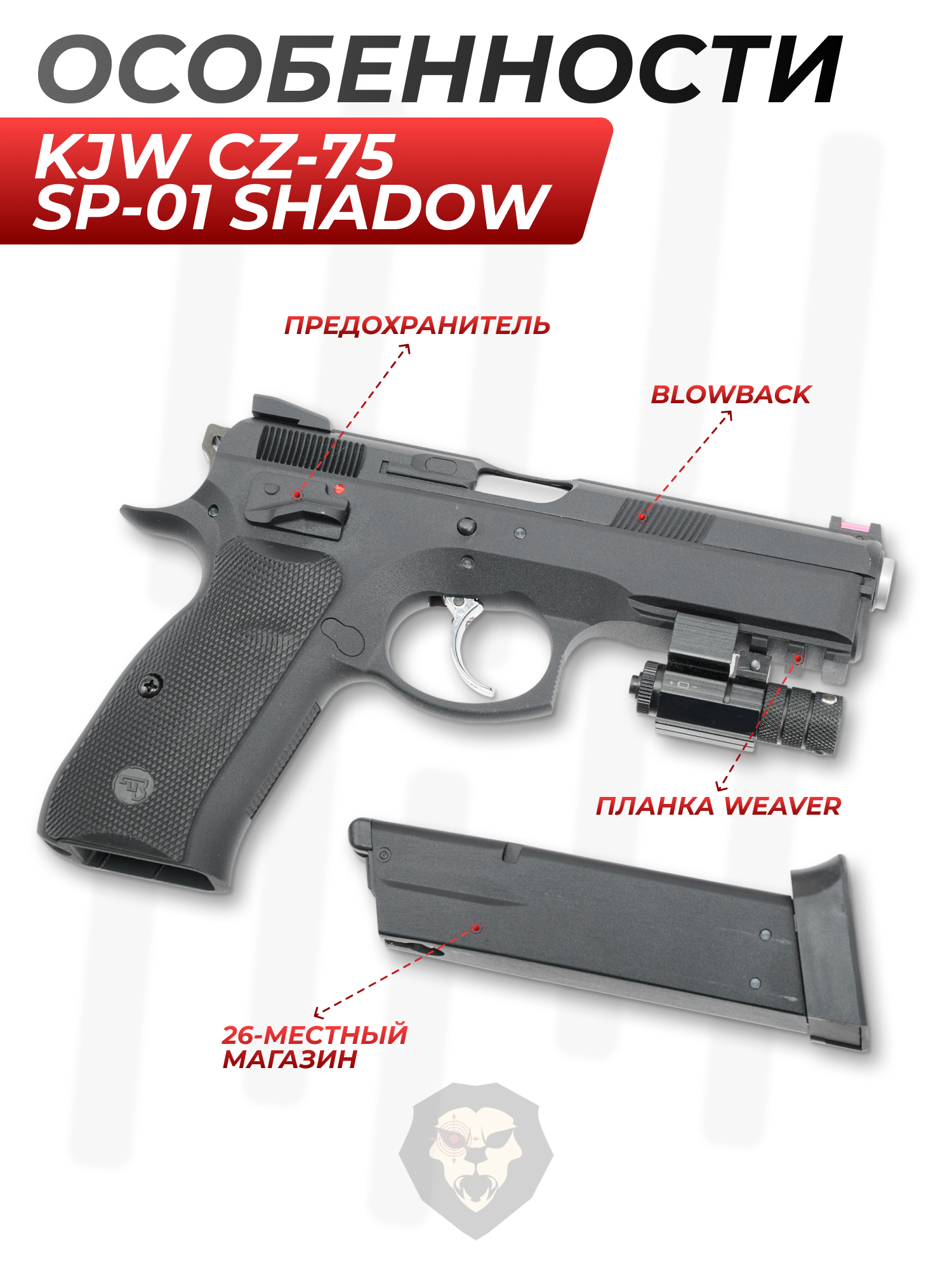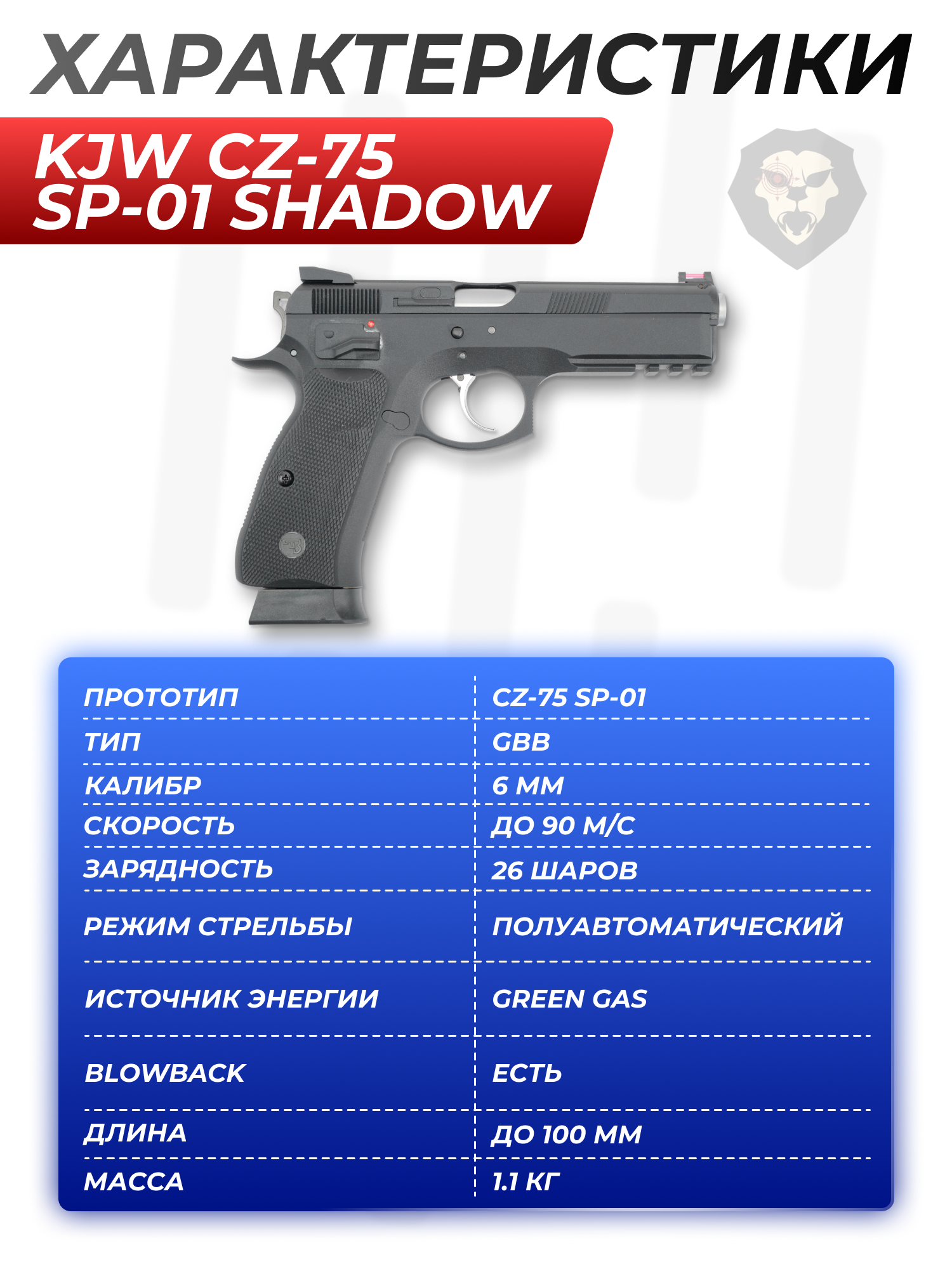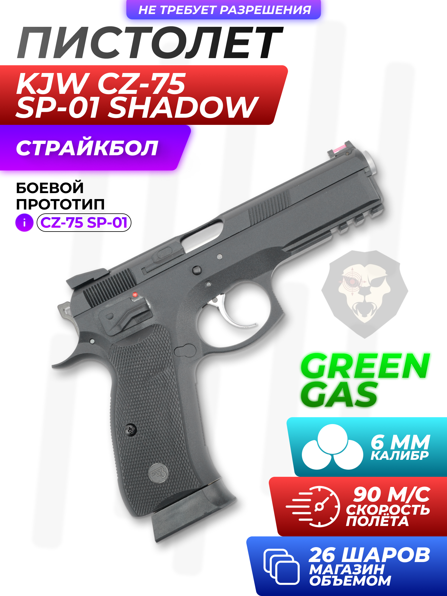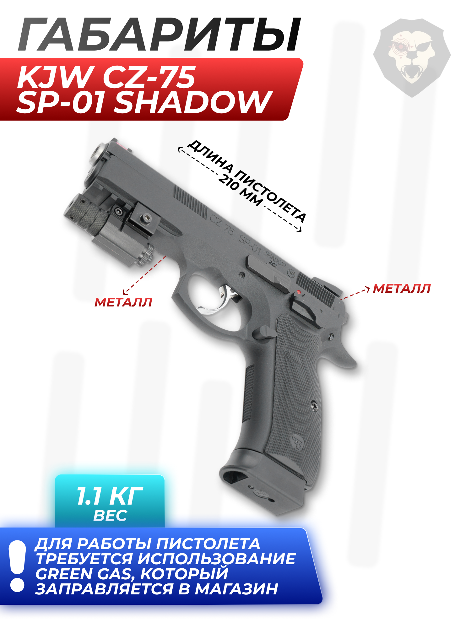 Страйкбольный пистолет KJW CZ-75 SP-01 Shadow (6 мм, GBB, Green Gas) купить в интернет-магазине Popadiv10.