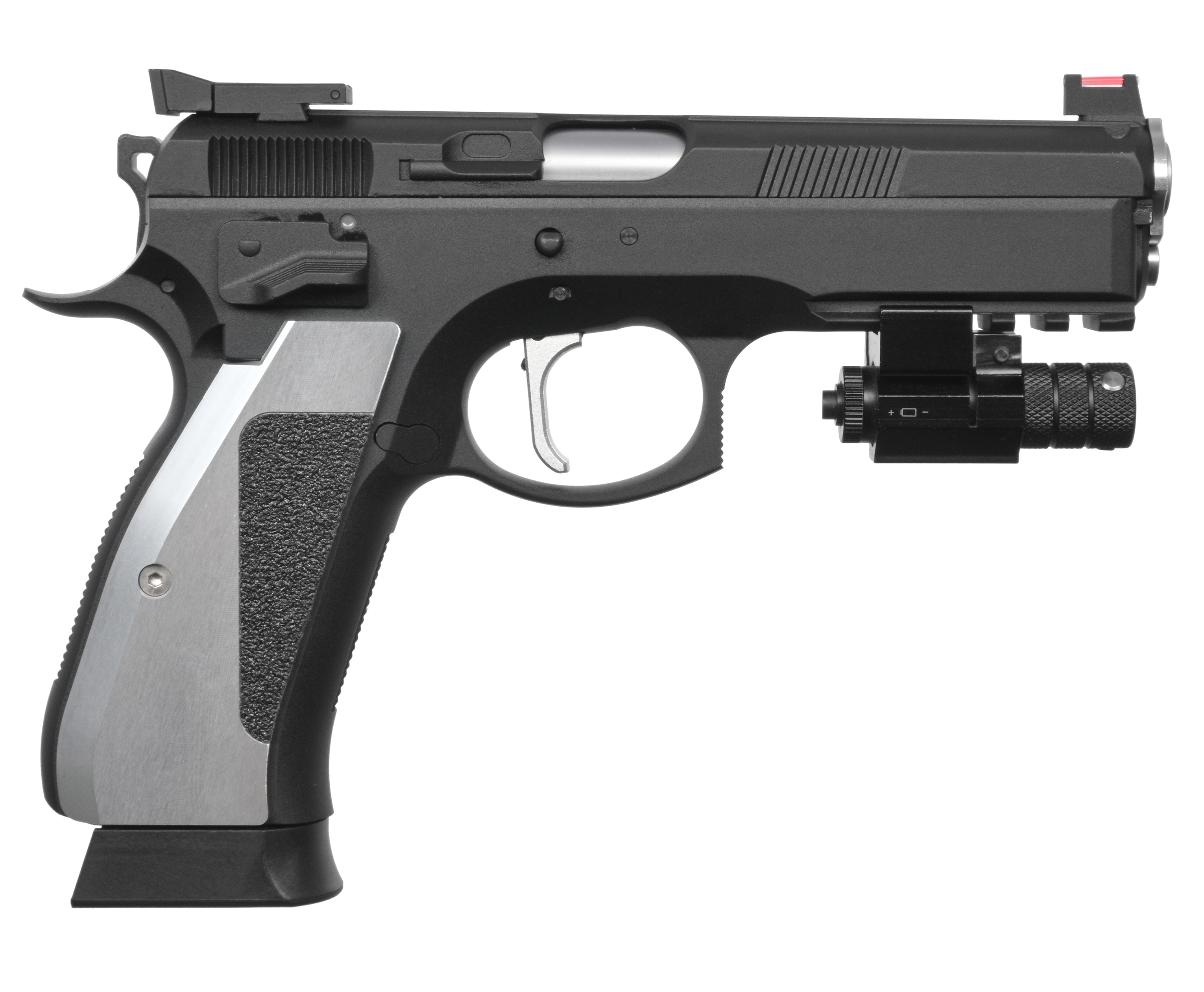 К числу последних относится обозреваемый аирсофт пистолет SP-01 Shadow в модификации ACCU с декорированной рукоятью. Экземпляр построен по GBB схеме, однако полностью передает особенности и габариты чешского CZ-75. Образец характеризуется длиной 216 миллиметров и изготавливается из металла, за счет чего получился довольно увесистым - его масса составляет 1.185 кг.