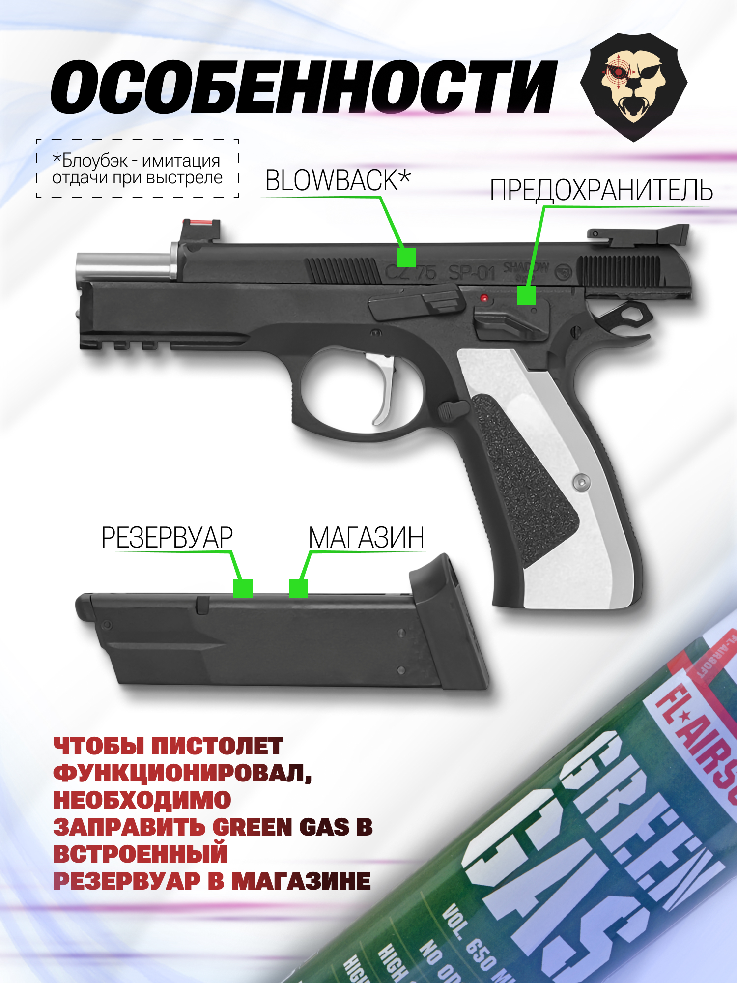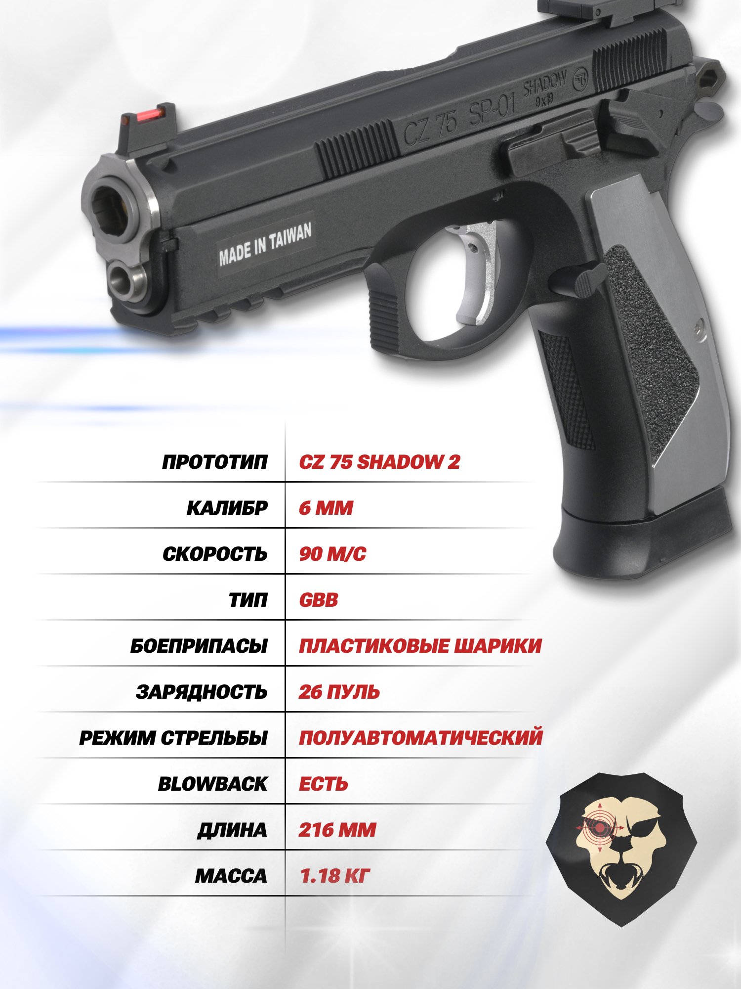 Страйкбольный пистолет KJW CZ-75 SP-01 Shadow (6 мм, GBB, Green Gas, ACCU) купить в интернет-магазине Popadiv10.