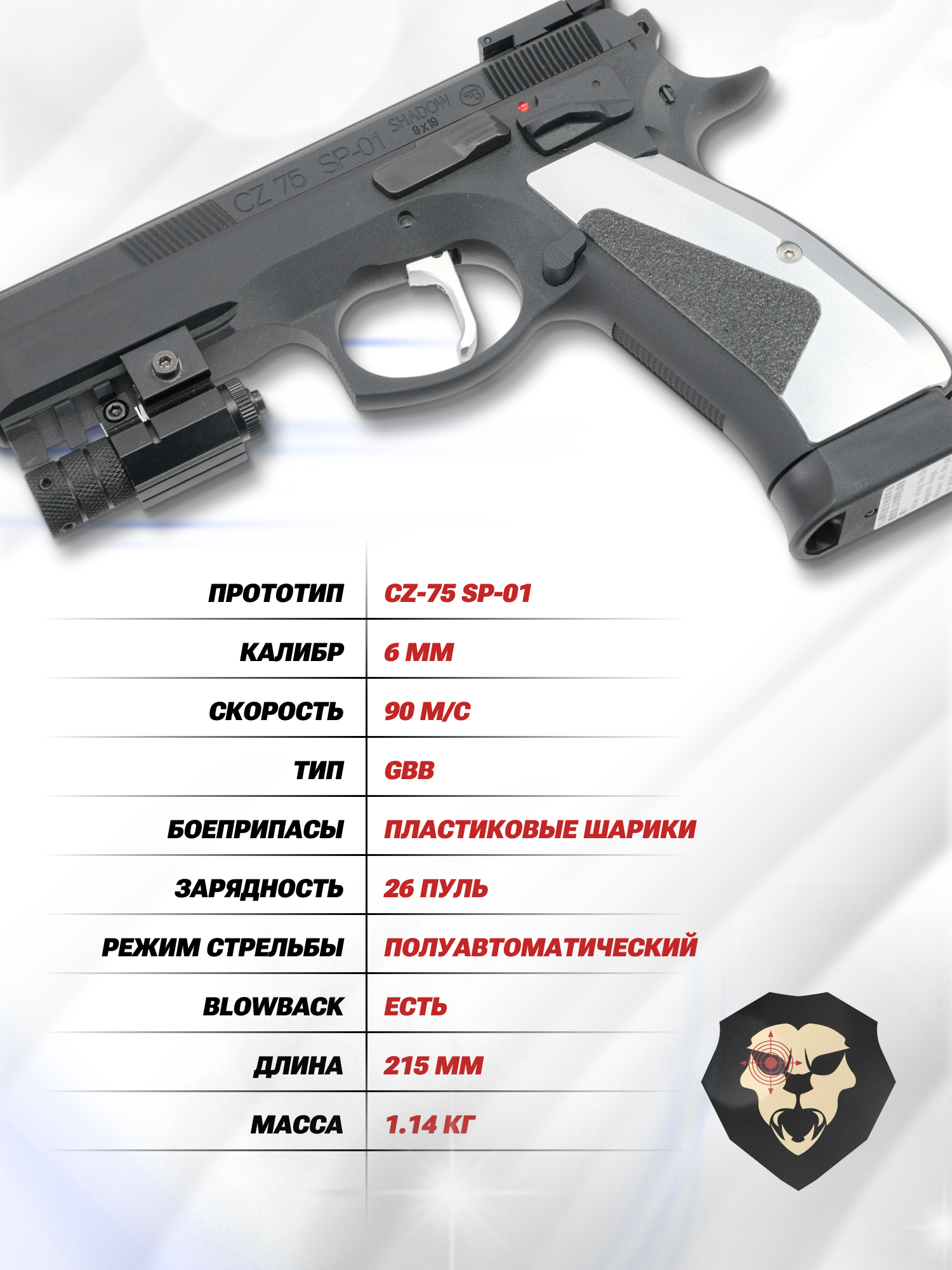 Страйкбольный пистолет KJW CZ-75 SP-01 Shadow (6 мм, GBB, CO2, ACCU) купить в интернет-магазине Popadiv10.