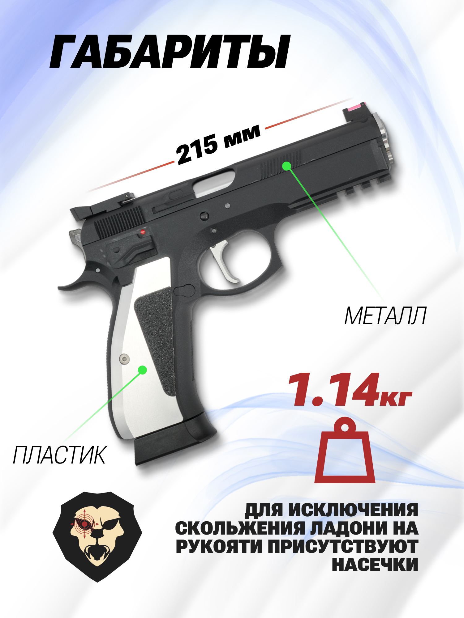 | Комплектация | Пистолет, магазин, ключ - 2 шт, шары, упаковка, краткая документация, копия сертификата (по запросу покупателя) |