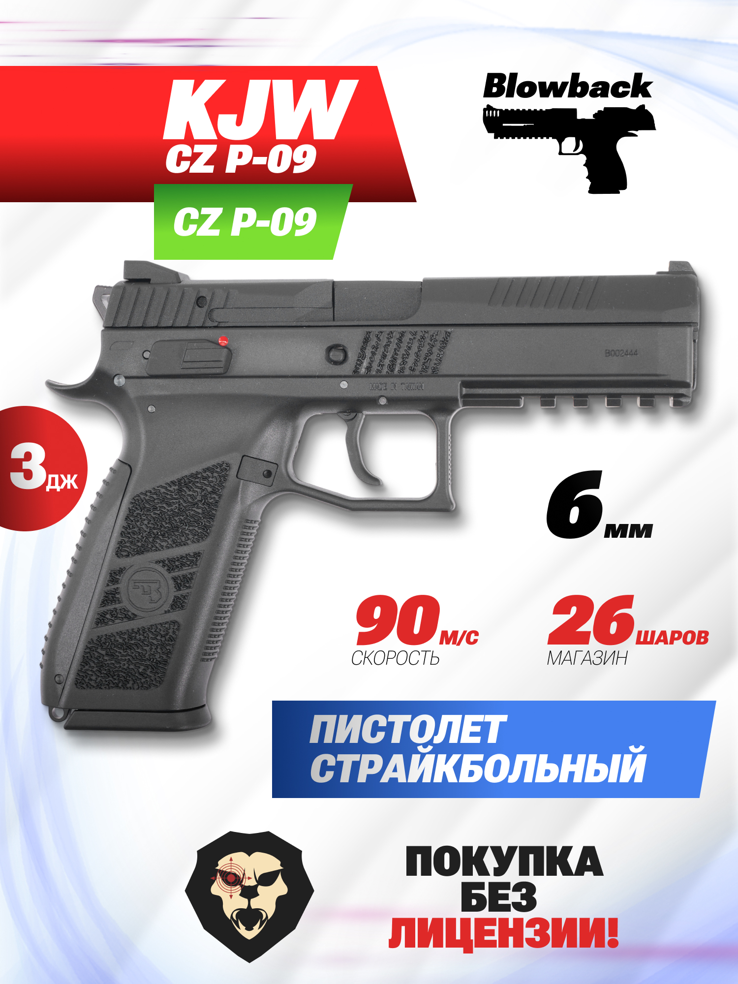 Информация о товаре "Страйкбольный пистолет KJW CZ P-09 (6 мм, Green Gas, black, GBB)" носит ознакомительный характер, и не является публичной офертой, определяемой положениями Статьи 437 Гражданского кодекса Российской Федерации, характеристики, внешний вид, цвет и комплектация могут быть изменены производителем без уведомления.