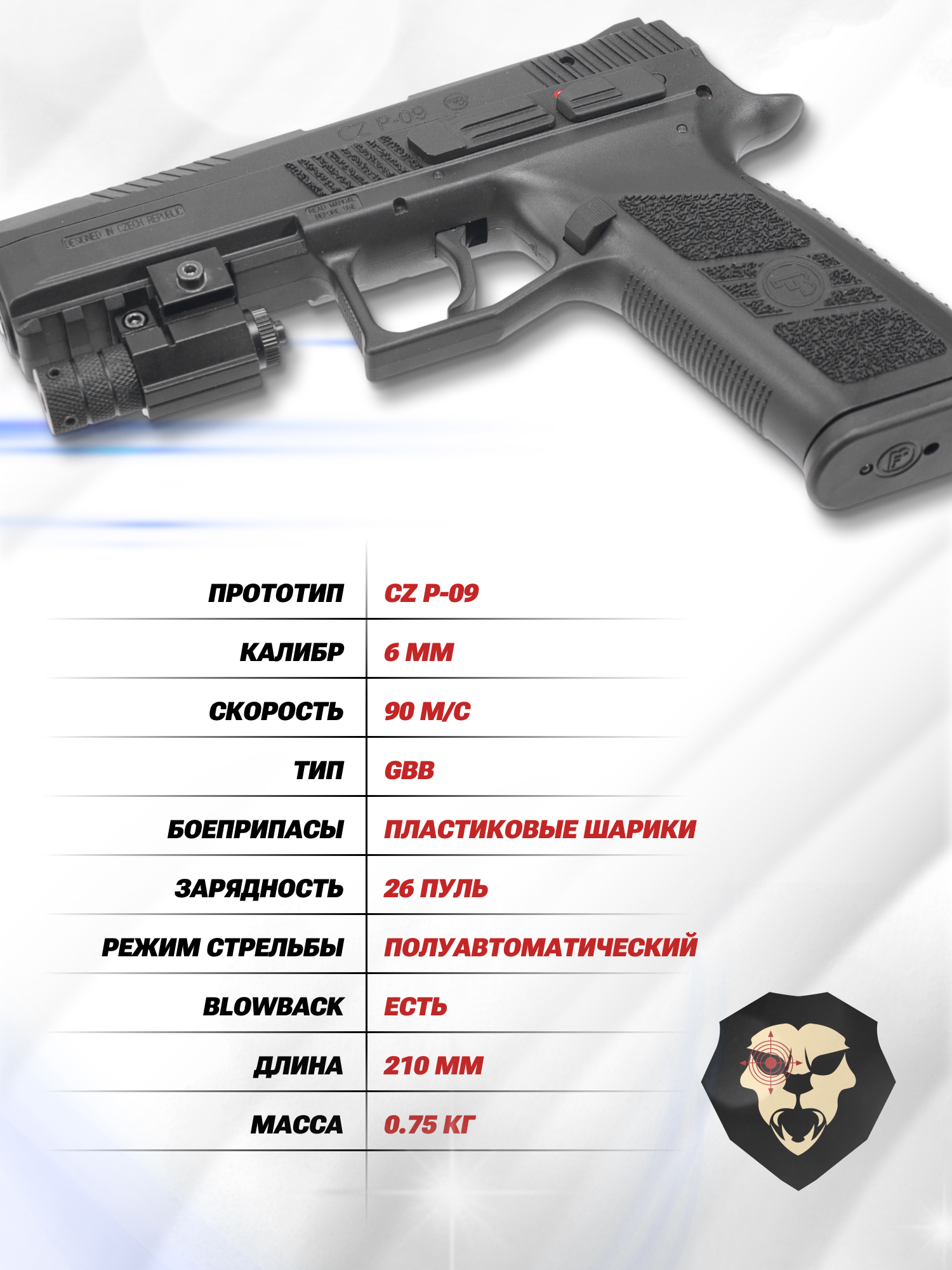 | Комплектация | Пистолет, магазин, шары, упаковка, краткая документация, копия сертификата (по запросу покупателя) |