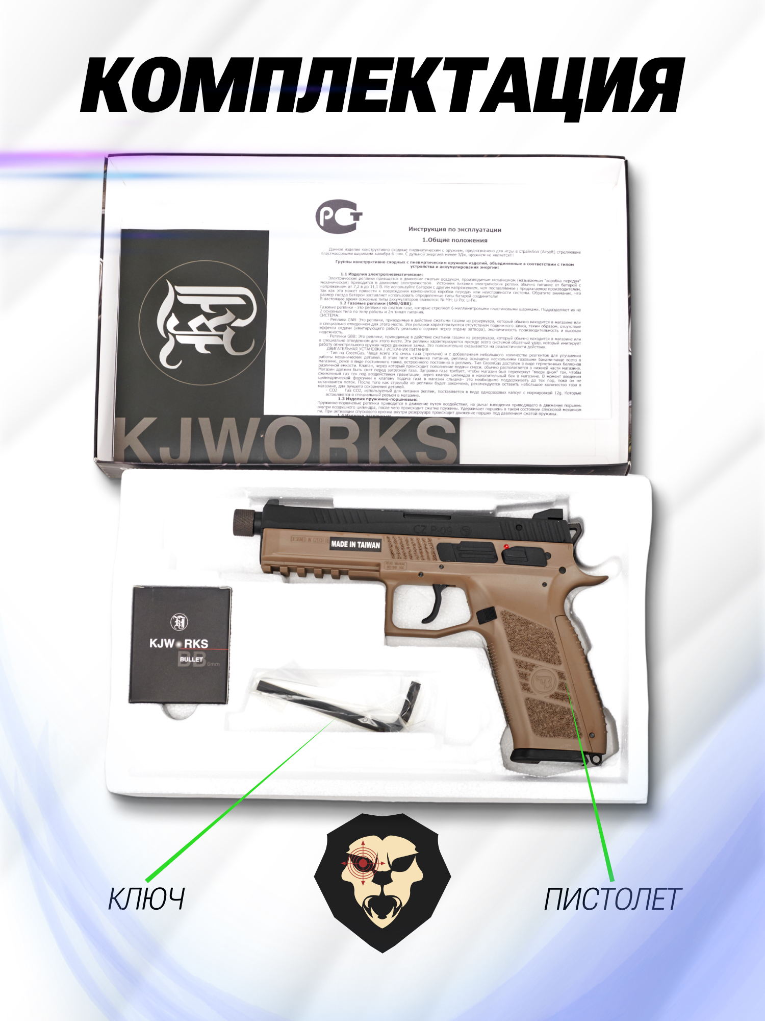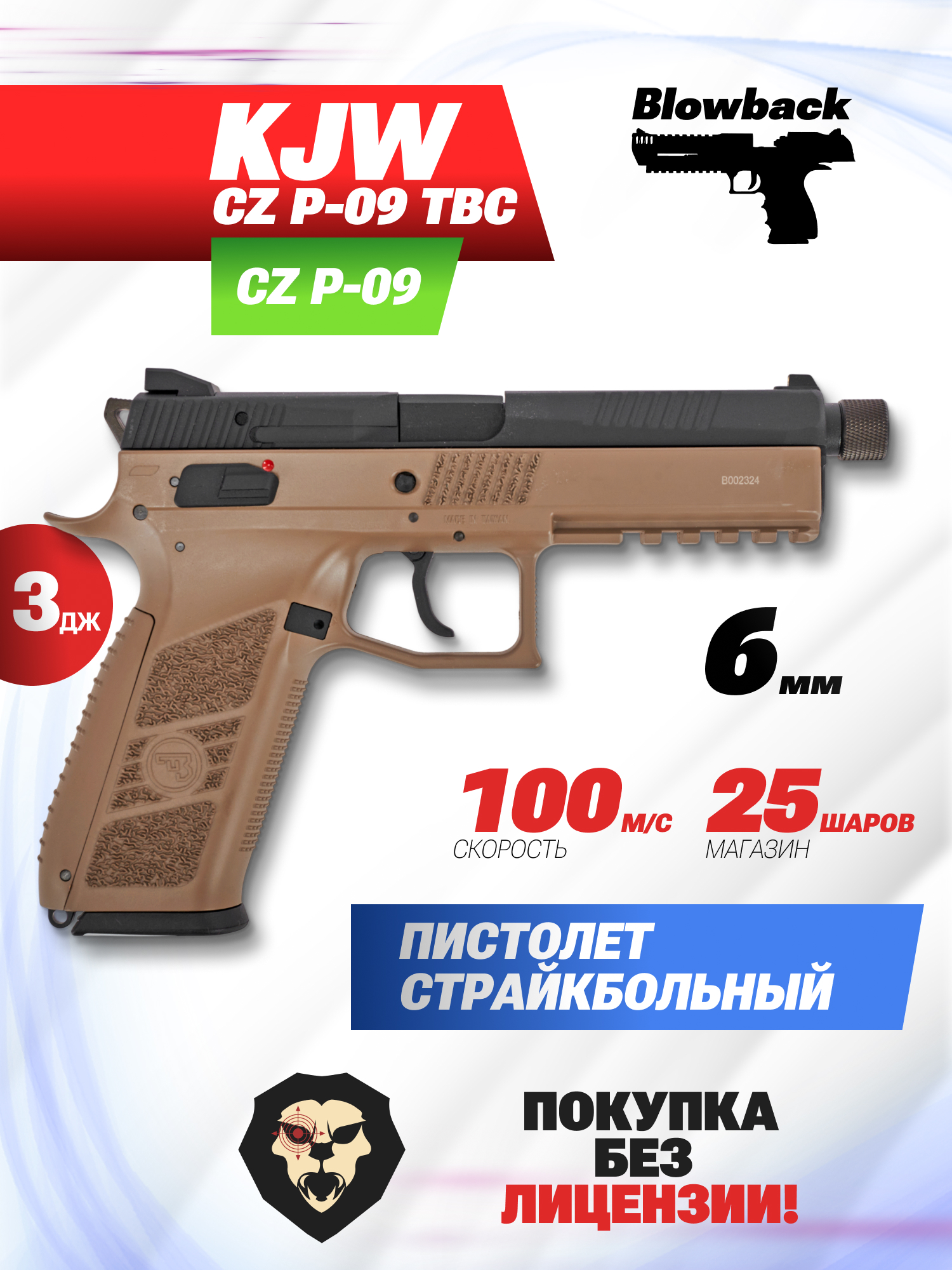 Страйкбольный пистолет KJW CZ P-09 TBC (6 мм, CO2, Tan, с резьбой) текущий товар