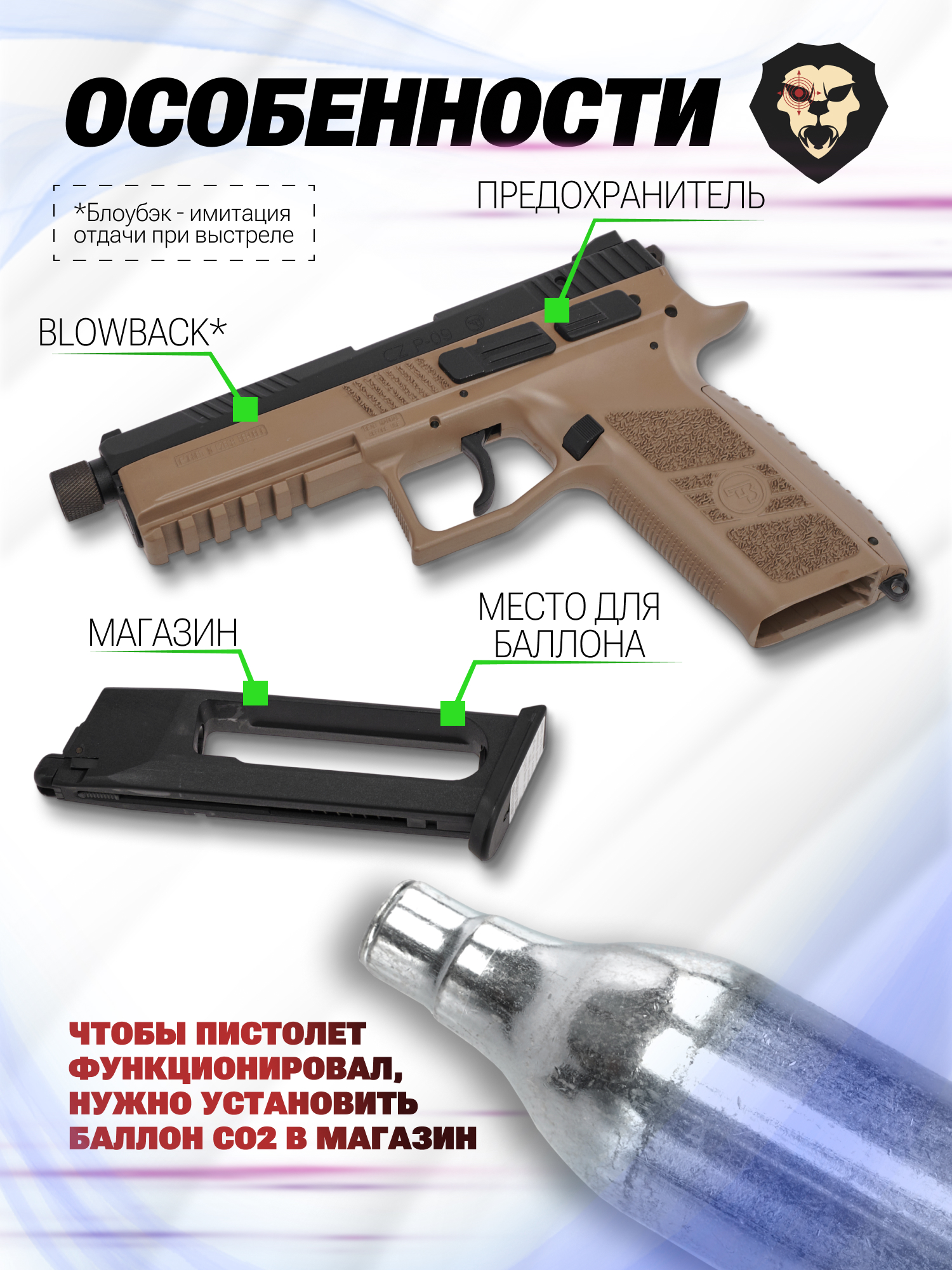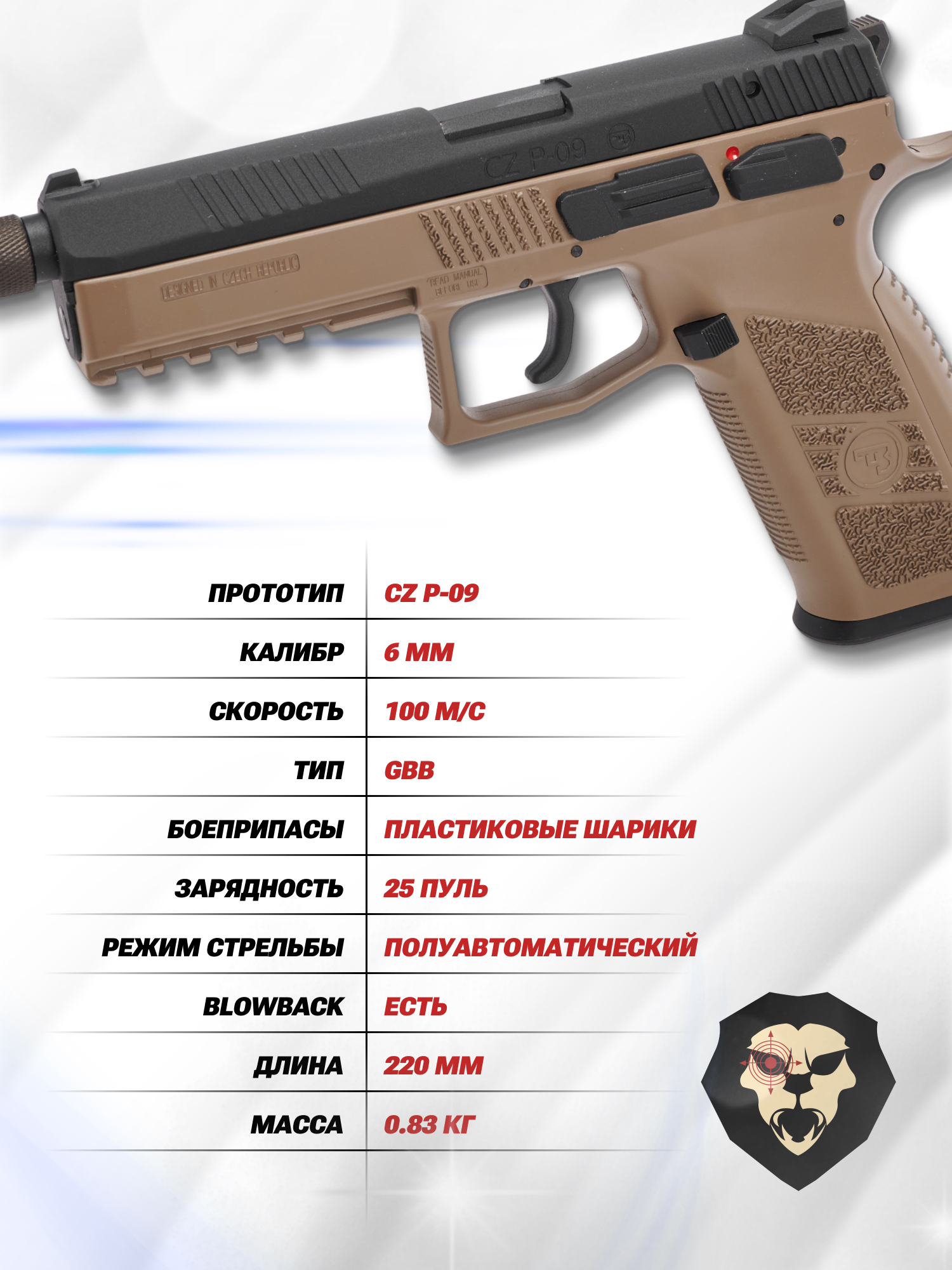 Описание страйкбольного пистолета КЖВ СЗ П-09 ТБС (6 мм, СО2, Тан, с резьбой)