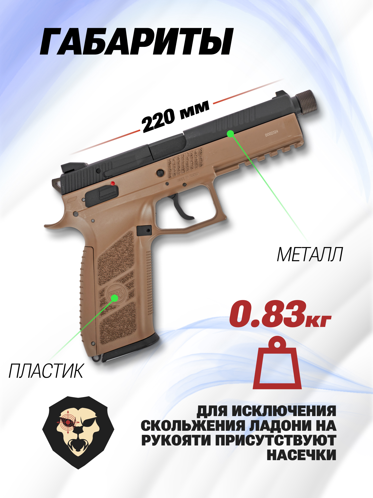 Характеристики страйкбольного пистолета KJW CZ P-09 TBC (6 мм, CO2, Tan, с резьбой)