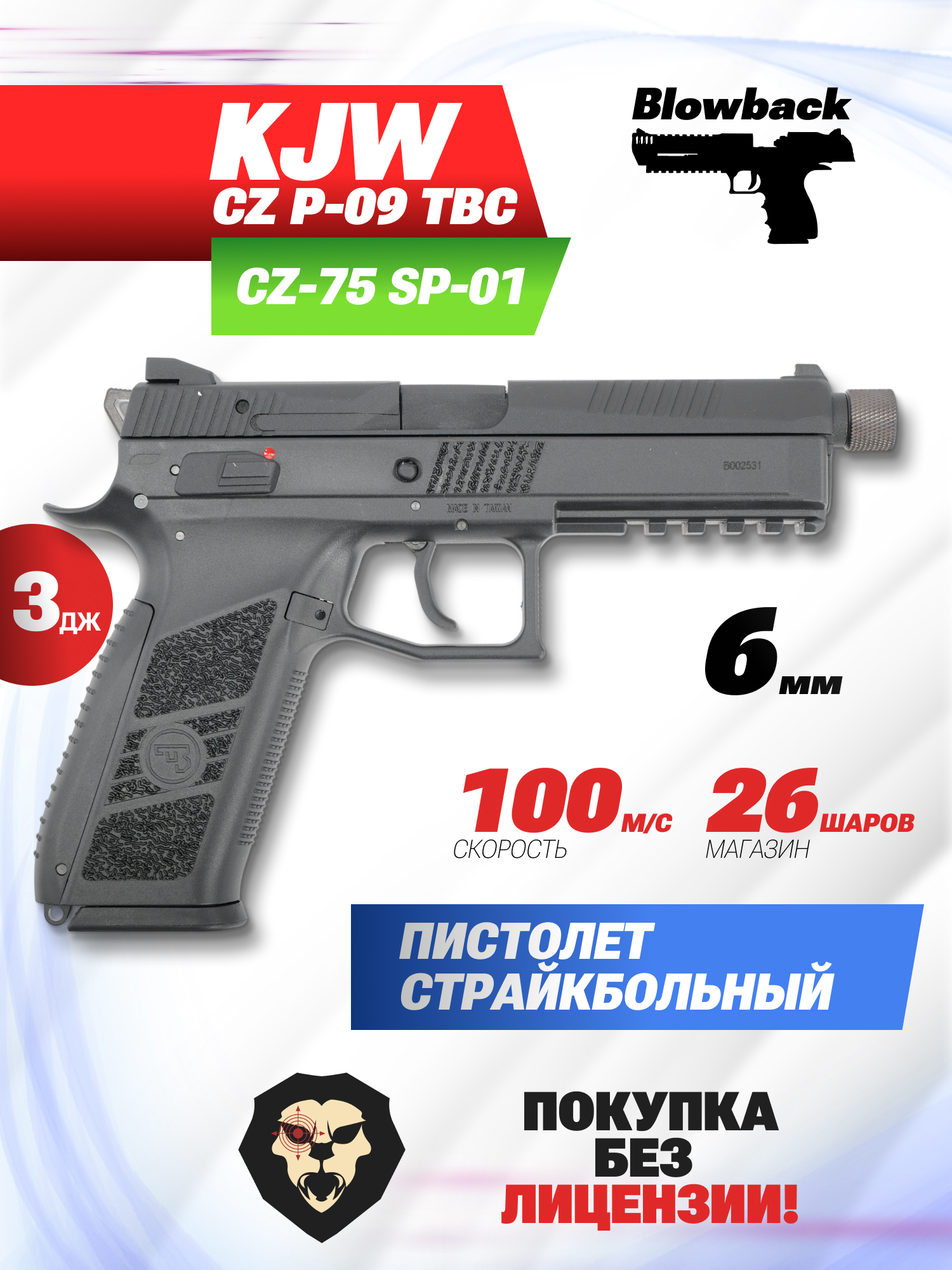 Страйкбольный пистолет KJW CZ P-09 TBC (6 мм, GBB, CO2, удлиненный ствол) купить в интернет-магазине Popadiv10.