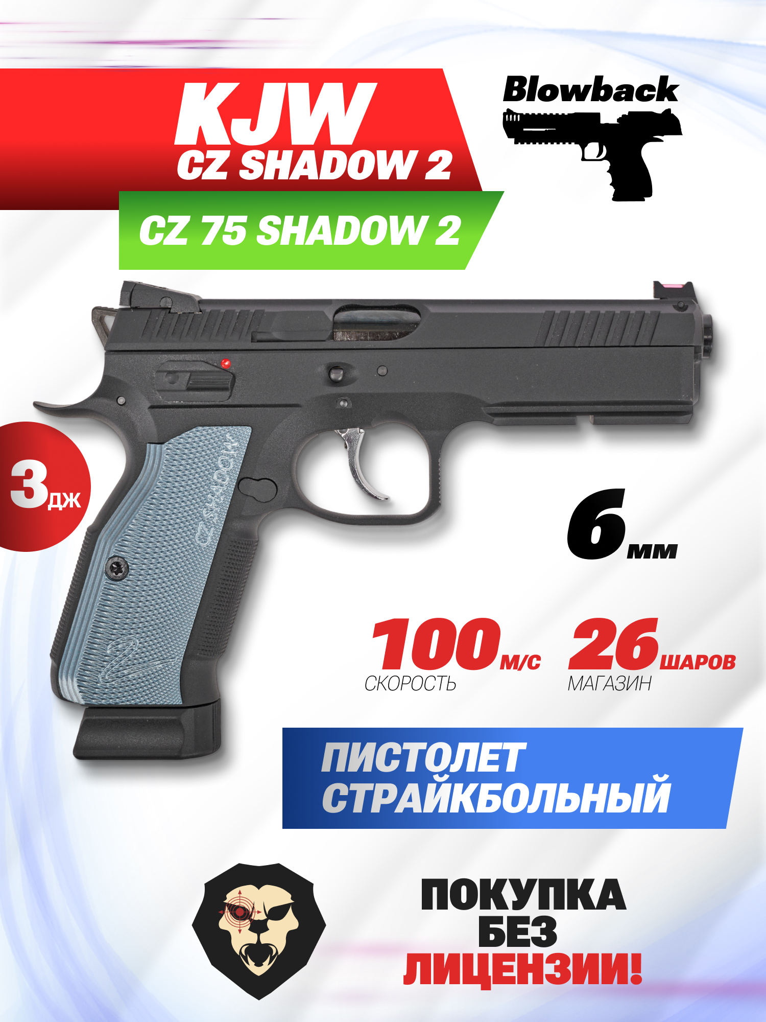 Информация о товаре "Страйкбольный пистолет KJW CZ Shadow 2 (6 мм, черный, green gas)" носит ознакомительный характер, и не является публичной офертой, определяемой положениями Статьи 437 Гражданского кодекса Российской Федерации, характеристики, внешний вид, цвет и комплектация могут быть изменены производителем без уведомления.