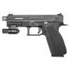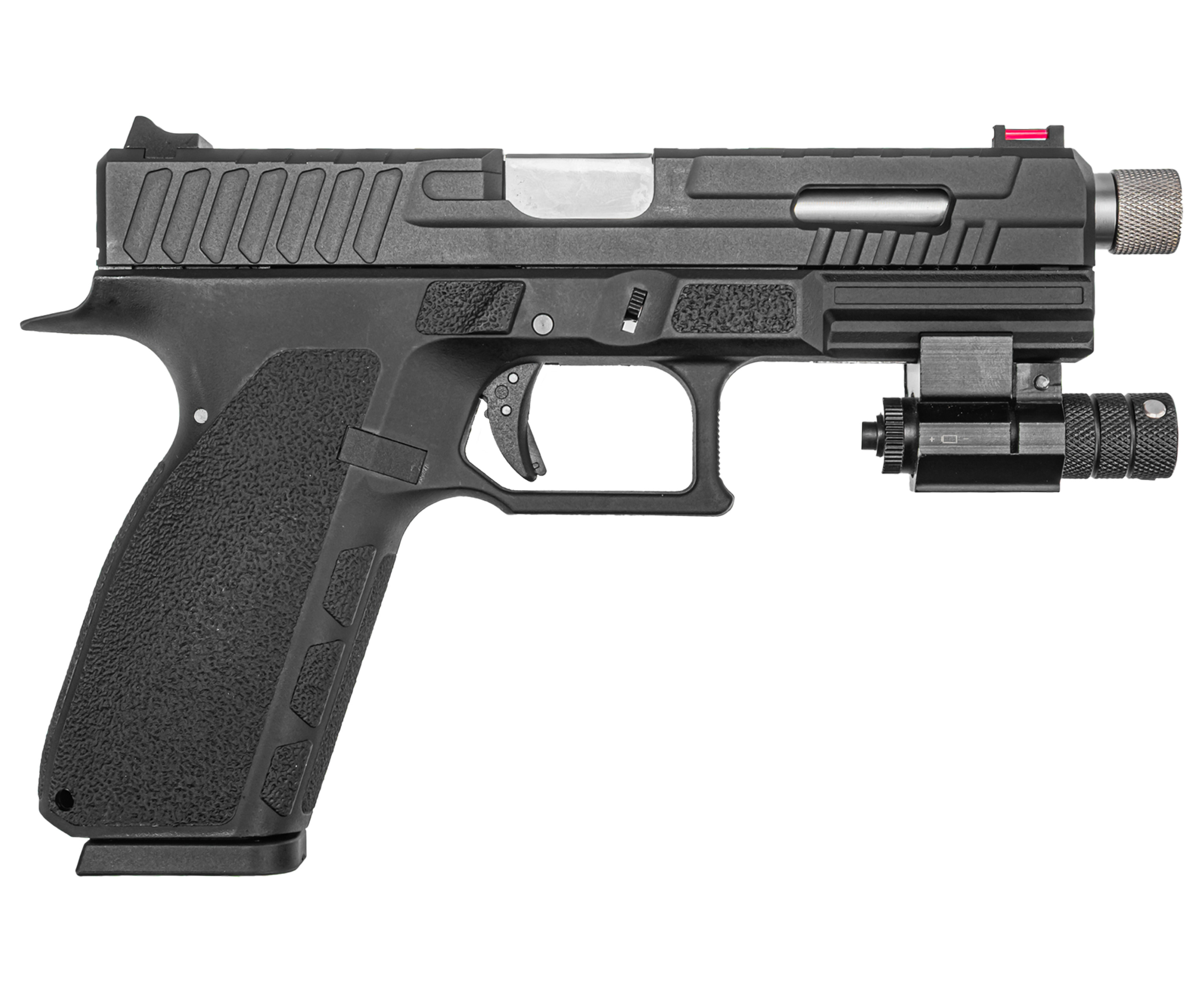 Будущий пользователь может по собственному усмотрению оснастить страйкбольные пистолеты KJW серии KP-13F различным тактическим обвесом. Для лазерных целеуказателей и фонарей перед спусковой скобой присутствует база Пикатинни. В свою очередь на срезе ствола есть резьба, прикрытая заглушкой - после демонтажа оной допускается установка трассерной насадки или глушителя.
