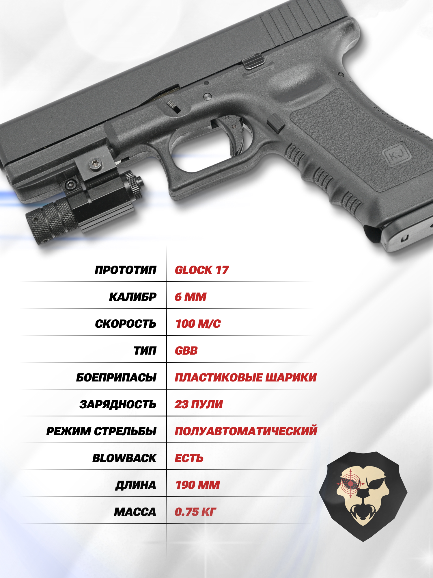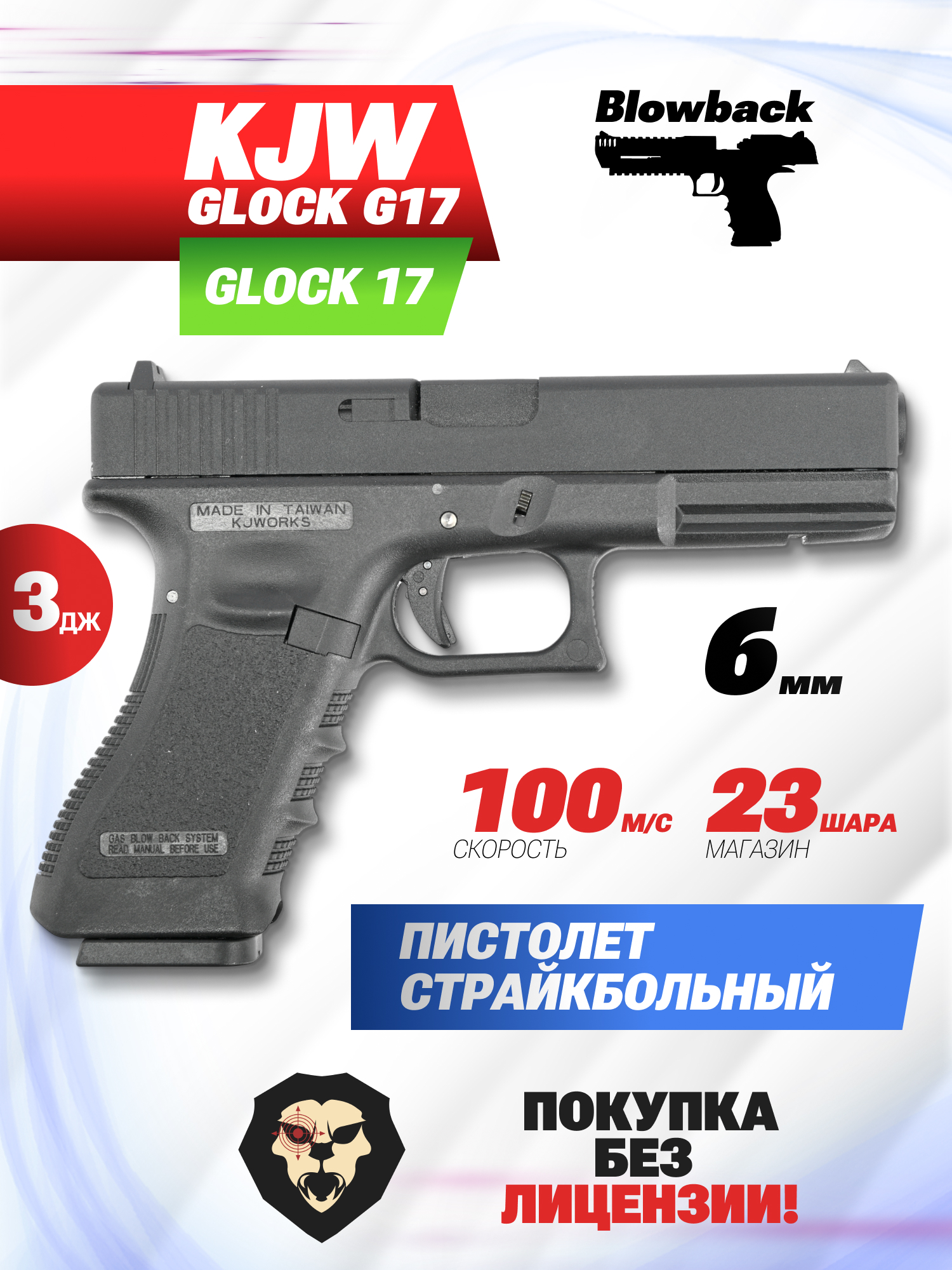 Страйкбольный пистолет KJW Glock G17 (6 мм, CO2, GBB, черный) купить в интернет-магазине Popadiv10.
