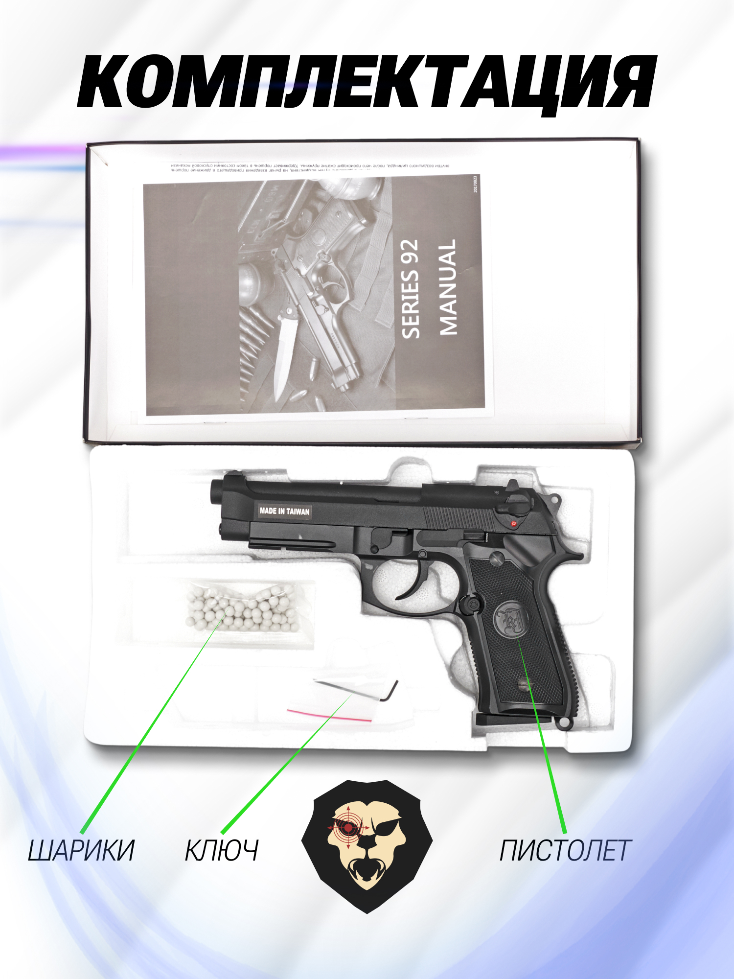 | Комплектация | Пистолет, магазин, шарики, ключ, упаковка |