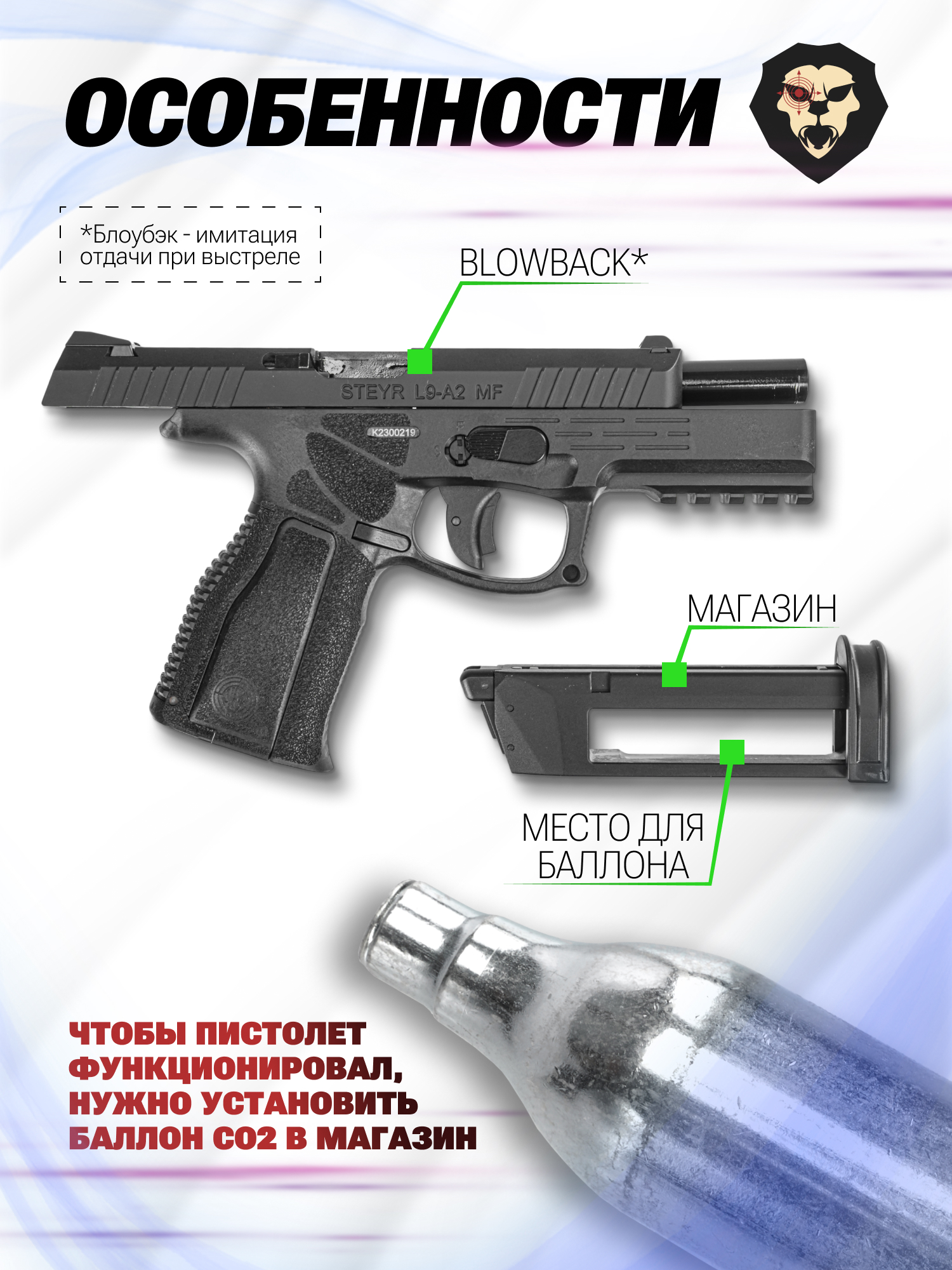 Информация о товаре "Страйкбольный пистолет KJW Steyr L9-A2 (6 мм, GBB, CO2)" носит ознакомительный характер, и не является публичной офертой, определяемой положениями Статьи 437 Гражданского кодекса Российской Федерации, характеристики, внешний вид, цвет и комплектация могут быть изменены производителем без уведомления.