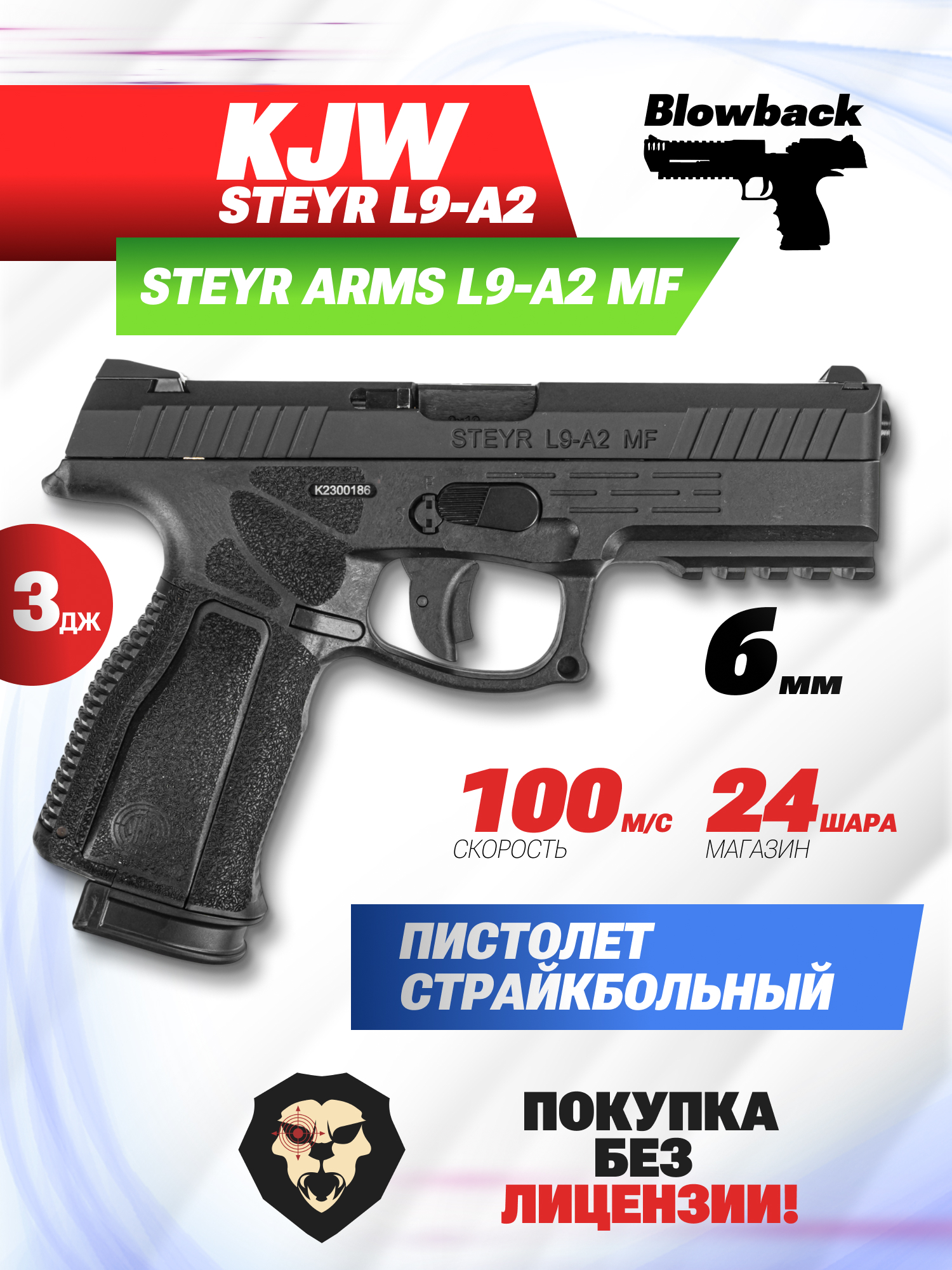 Страйкбольный пистолет KJW Steyr L9-A2 (6 мм, GBB, Green Gas) купить в интернет-магазине Popadiv10.