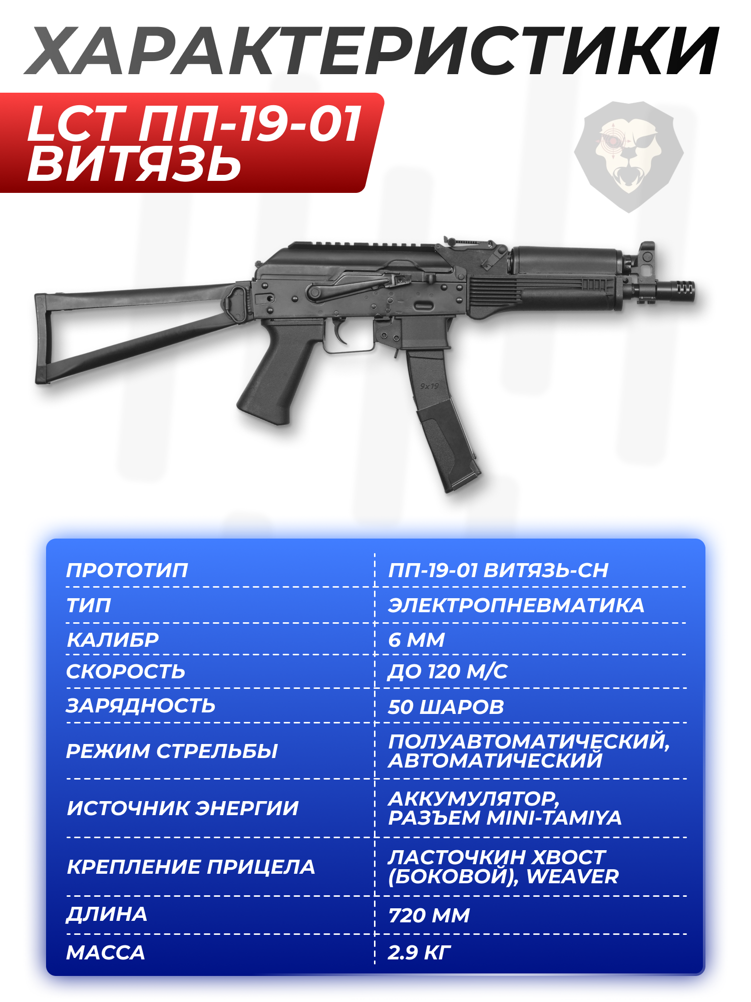 Информация о товаре "Страйкбольный пистолет-пулемет LCT ПП-19-01 Витязь (6 мм, PP-19-01)" носит ознакомительный характер, и не является публичной офертой, определяемой положениями Статьи 437 Гражданского кодекса Российской Федерации, характеристики, внешний вид, цвет и комплектация могут быть изменены производителем без уведомления.