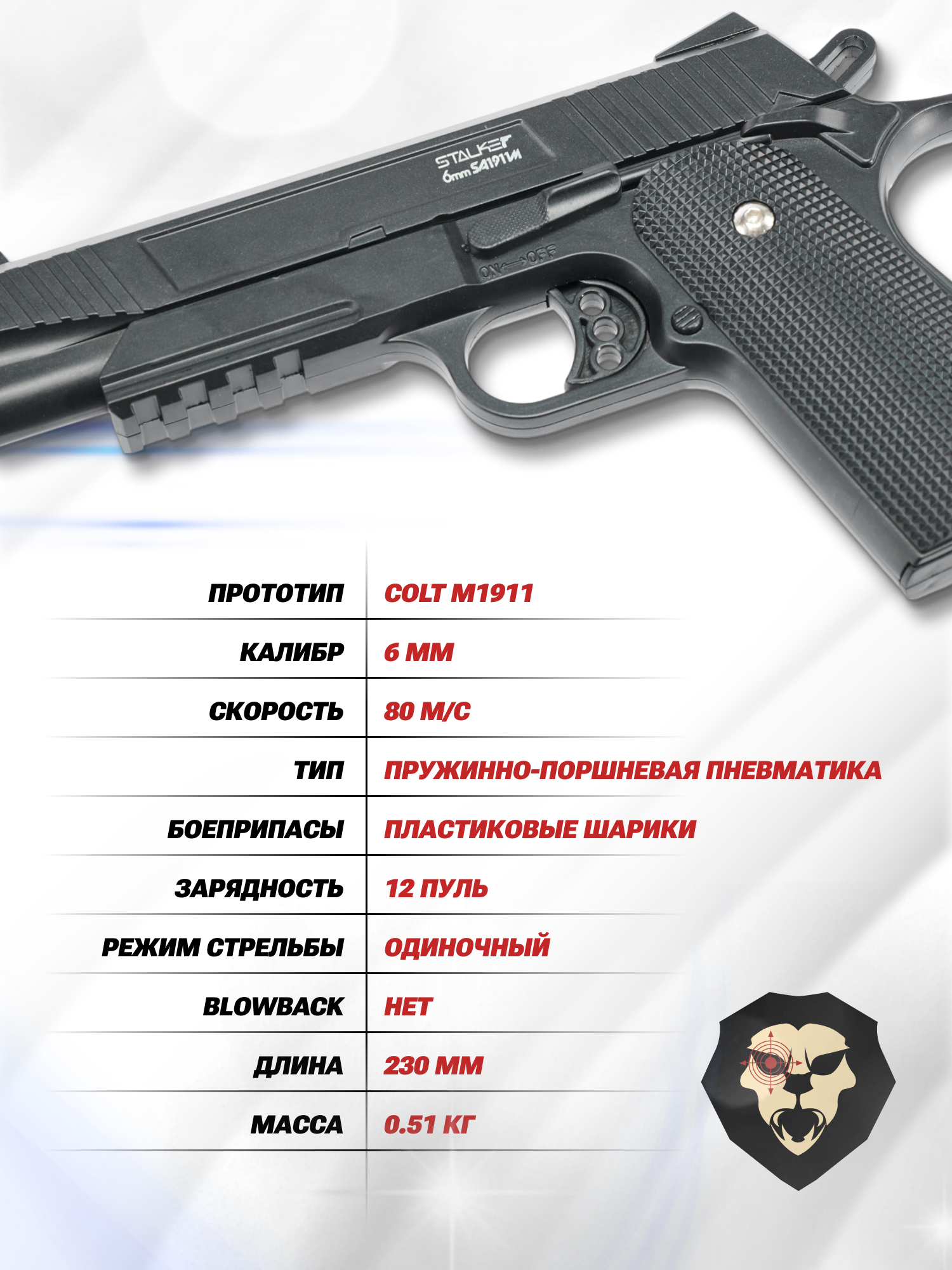 Страйкбольный пистолет Stalker SA1911M Spring (6 мм, металл) купить в интернет-магазине Popadiv10.