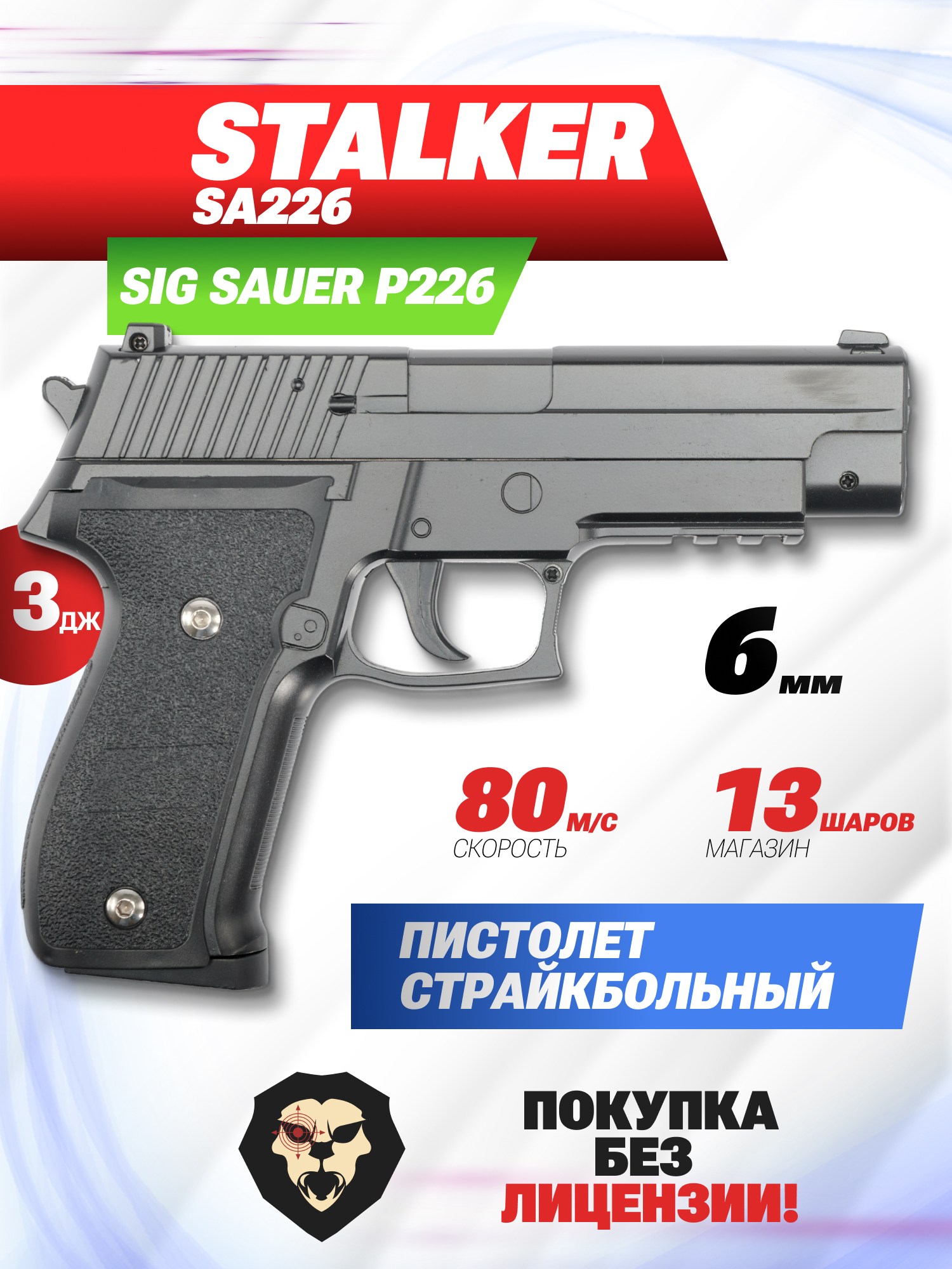 Артикул производителя SA-33071226 Страйкбольный пистолет Stalker SA226 (Sig Sauer P226, спринг, 6 мм) по низкой цене 2030 руб. Модель со штрихкодом производителя Вы можете оплатить наложенным платежем с доставкой или в отделении транспортной компании (ПЭК, СДЭК, Boxberry). Ваш заказ со штрихкодом 2000000042251 забрать на почте с оплатой при получении в любой части Российской Федерации.