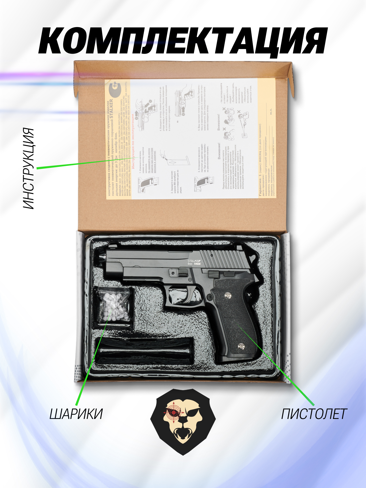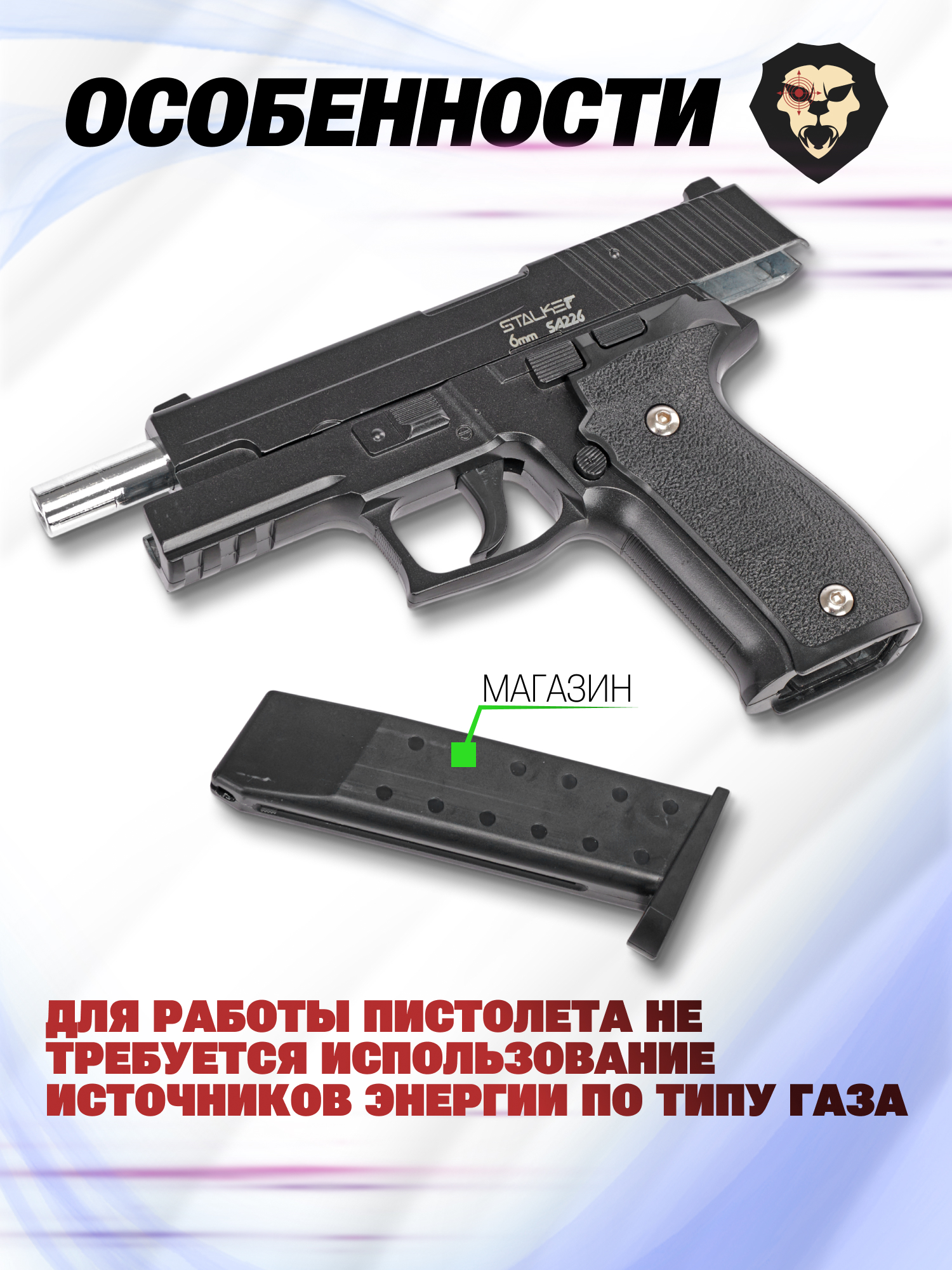 Информация о товаре "Страйкбольный пистолет Stalker SA226 (Sig Sauer P226, спринг, 6 мм)" носит ознакомительный характер, и не является публичной офертой, определяемой положениями Статьи 437 Гражданского кодекса Российской Федерации, характеристики, внешний вид, цвет и комплектация могут быть изменены производителем без уведомления.