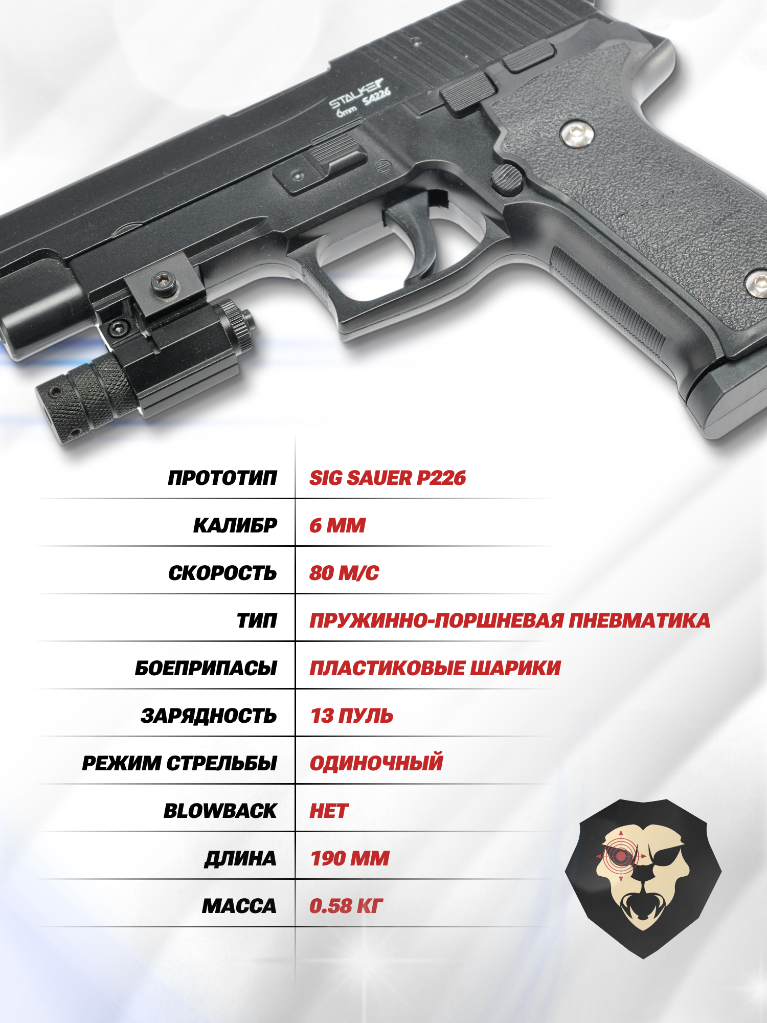 Страйкбольный пистолет Stalker SA226 (Sig Sauer P226, спринг, 6 мм) купить в интернет-магазине Popadiv10.