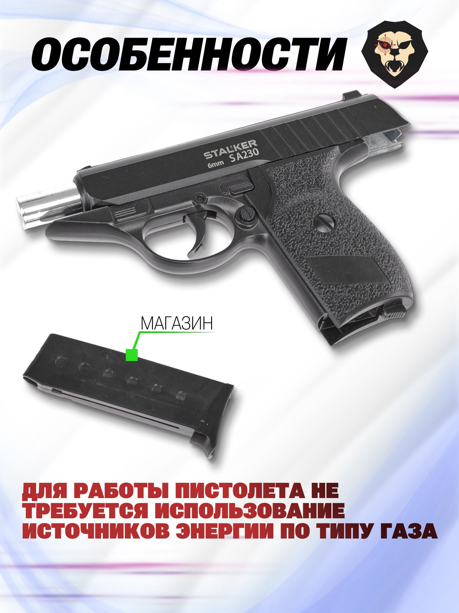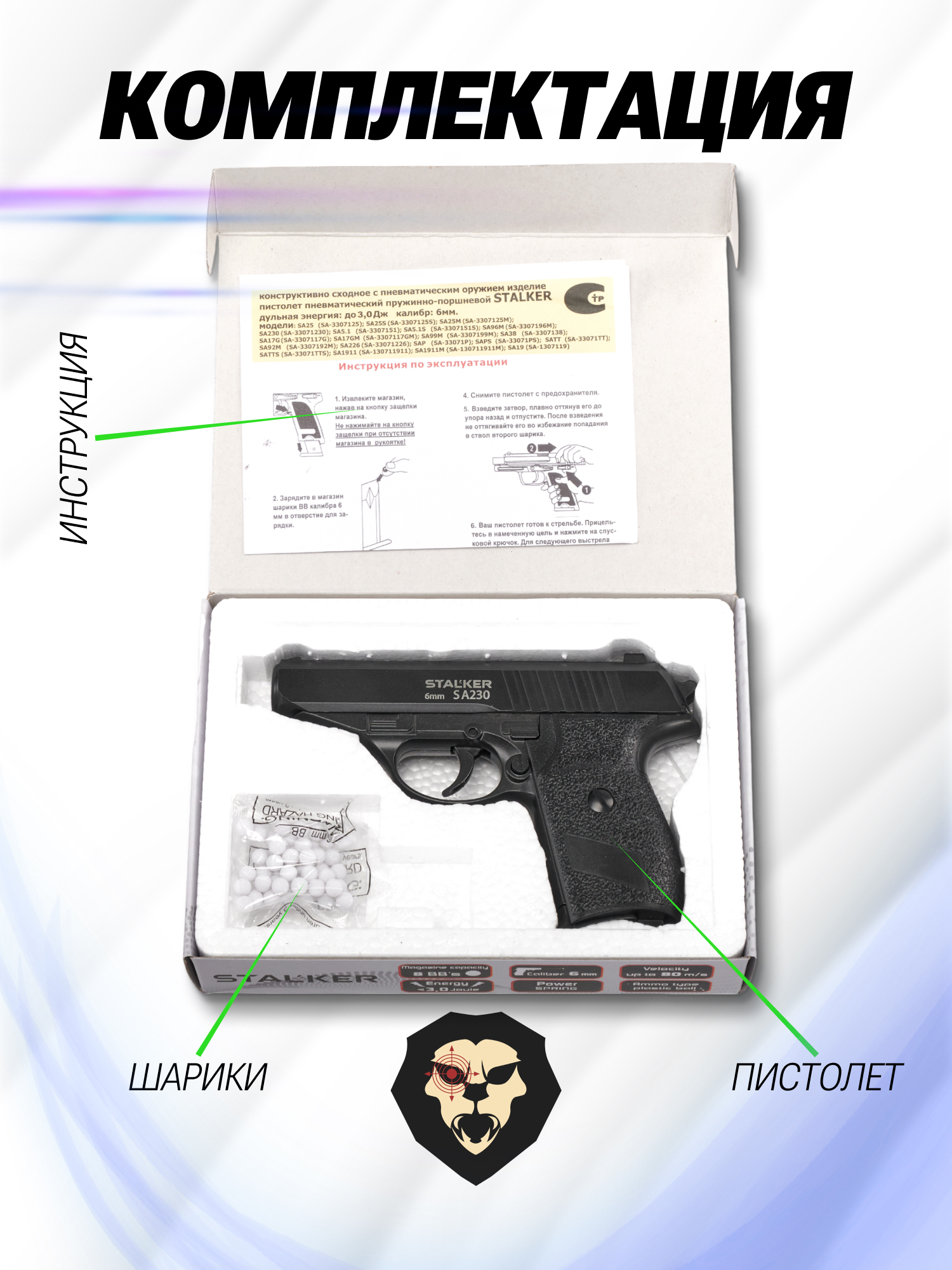 Информация о товаре "Страйкбольный пистолет Stalker SA230 (Sig Sauer P230, металл, spring)" носит ознакомительный характер, и не является публичной офертой, определяемой положениями Статьи 437 Гражданского кодекса Российской Федерации, характеристики, внешний вид, цвет и комплектация могут быть изменены производителем без уведомления.