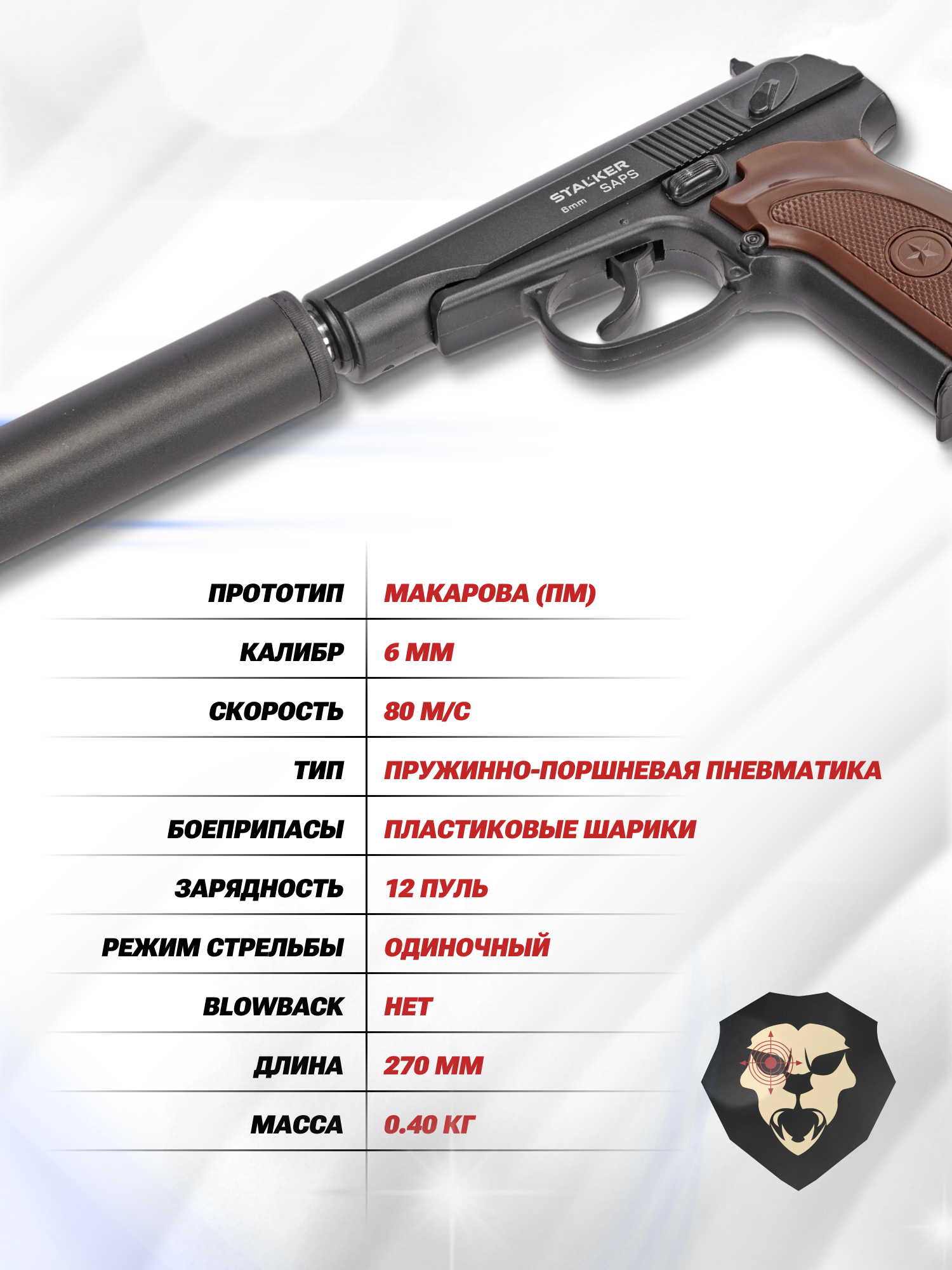 Страйкбольный пистолет Stalker SAPS (глушитель, 6 мм, ПМ) купить в интернет-магазине Popadiv10.