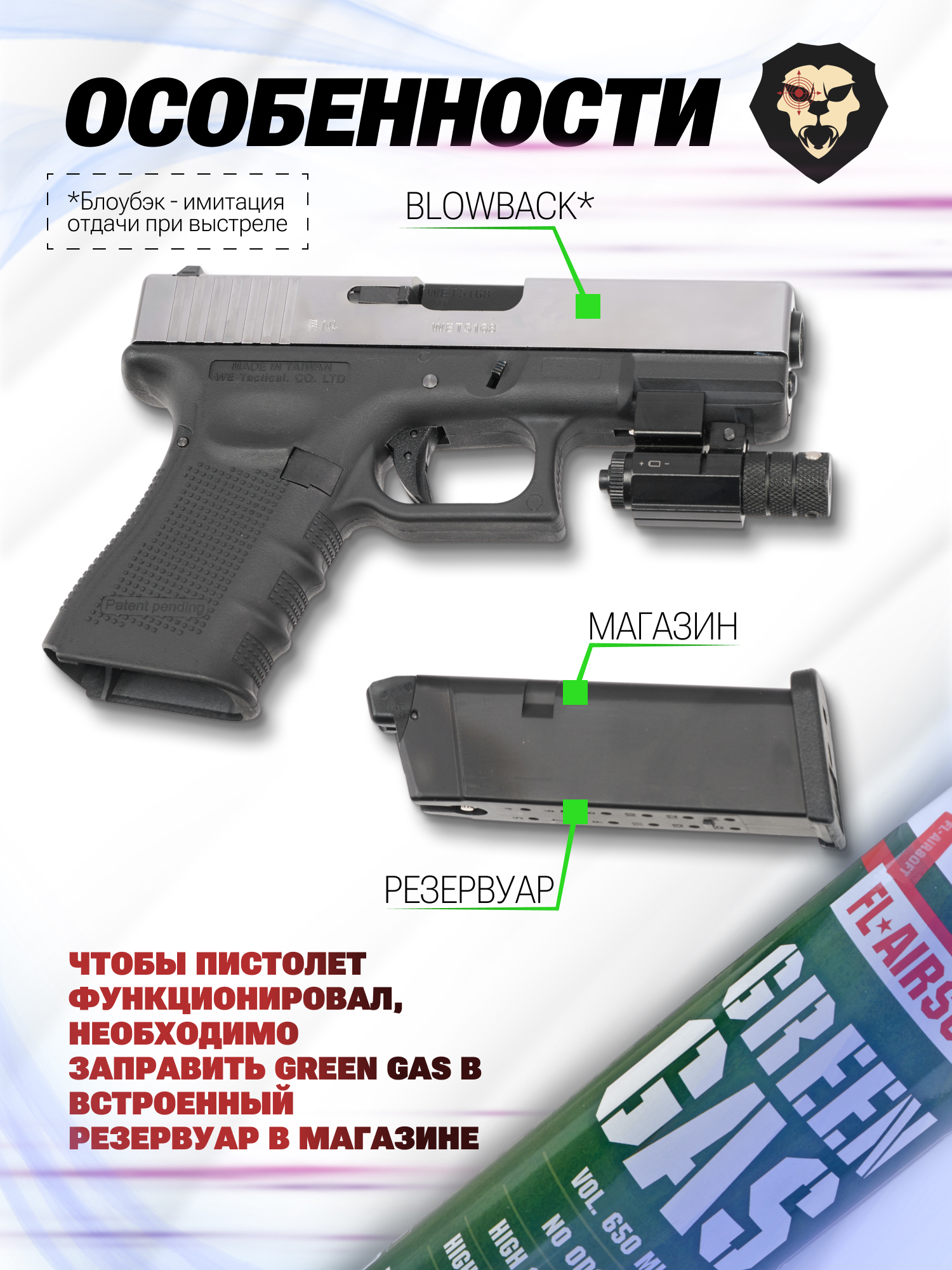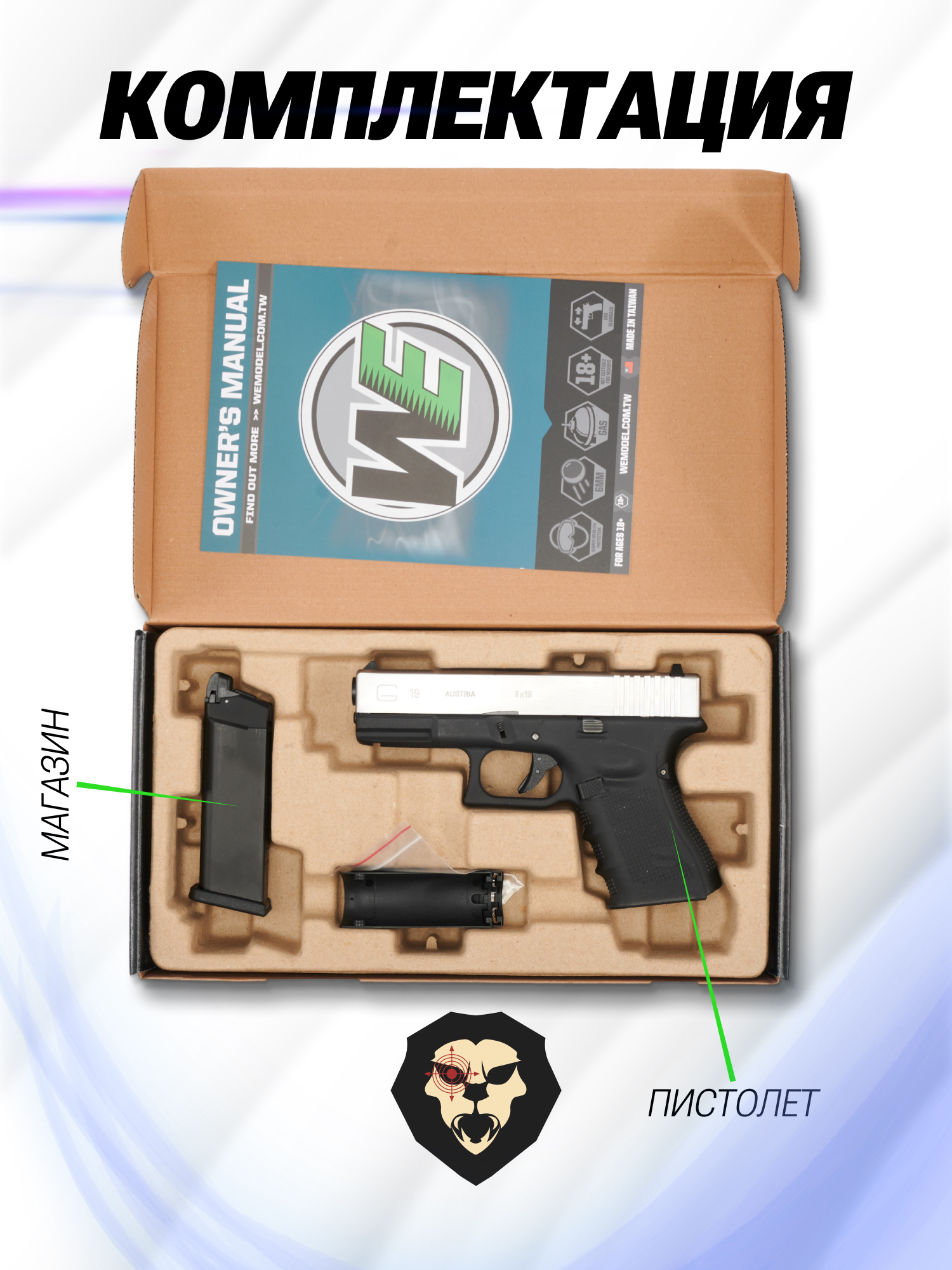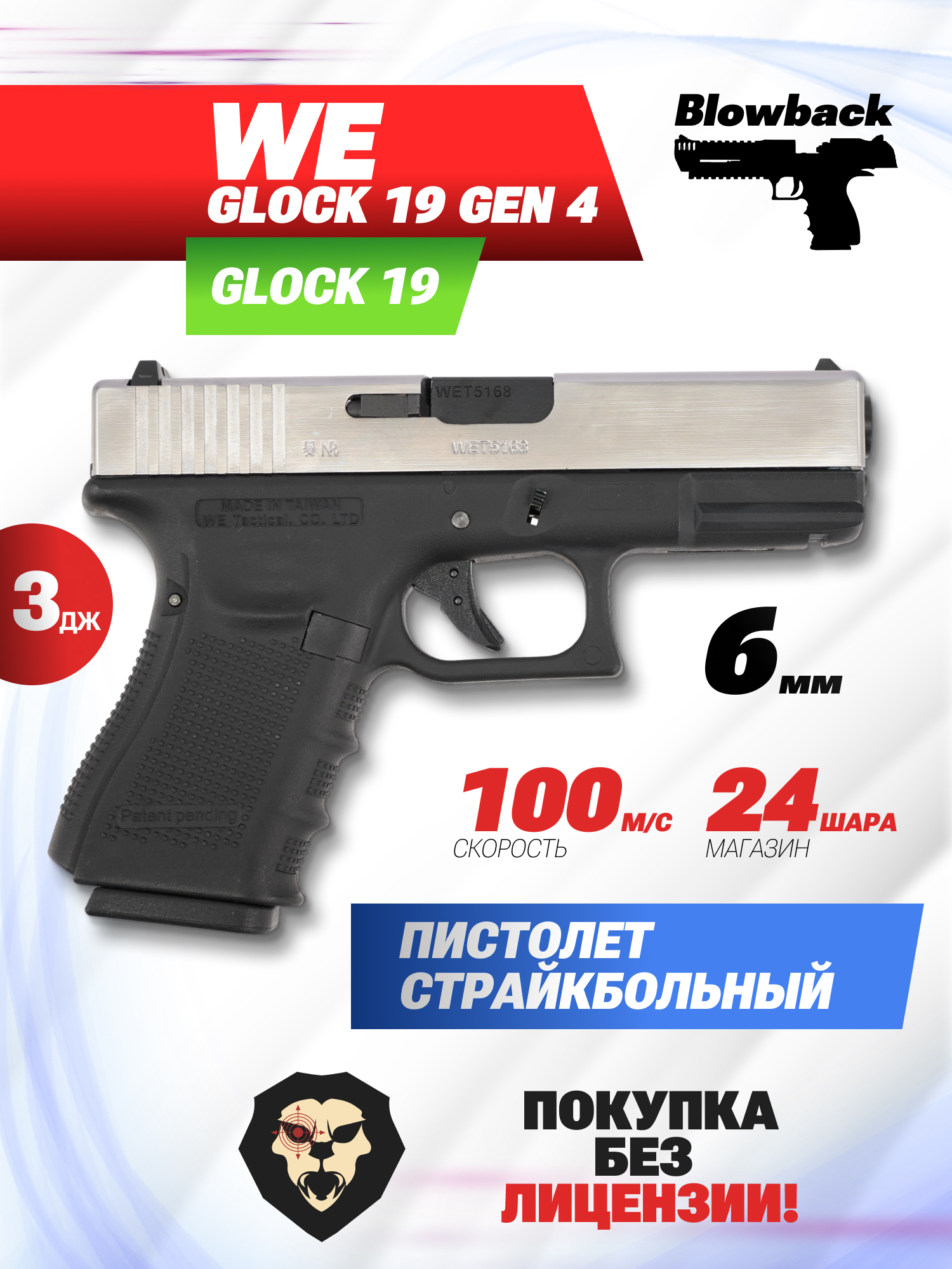 Страйкбольный пистолет WE Glock 19 Gen 4 (хром, WE-G003B-SV) купить в интернет-магазине Popadiv10.