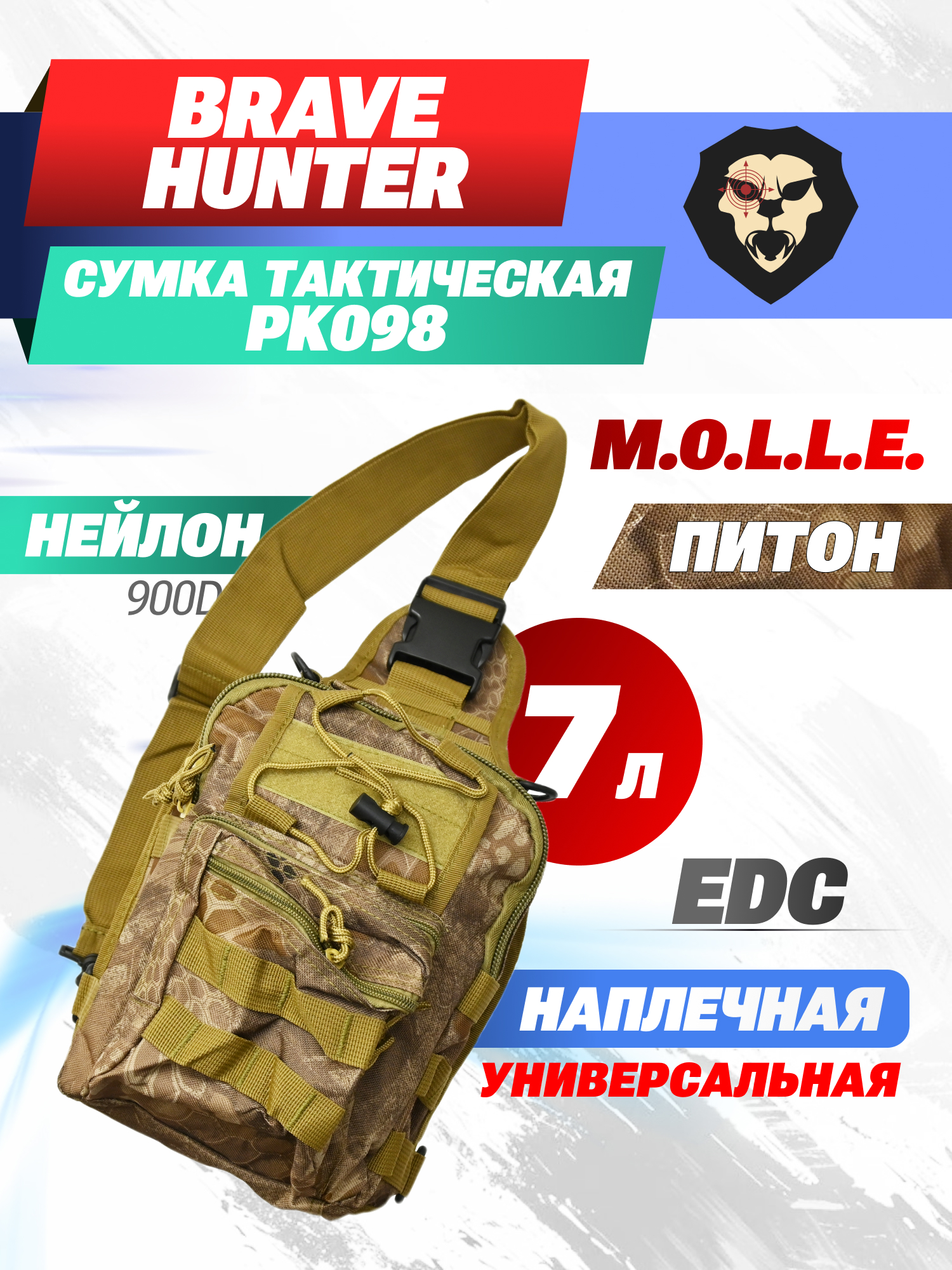 Сумка тактическая Brave Hunter PK098 (Питон, нейлон 900D) купить в интернет-магазине Popadiv10.