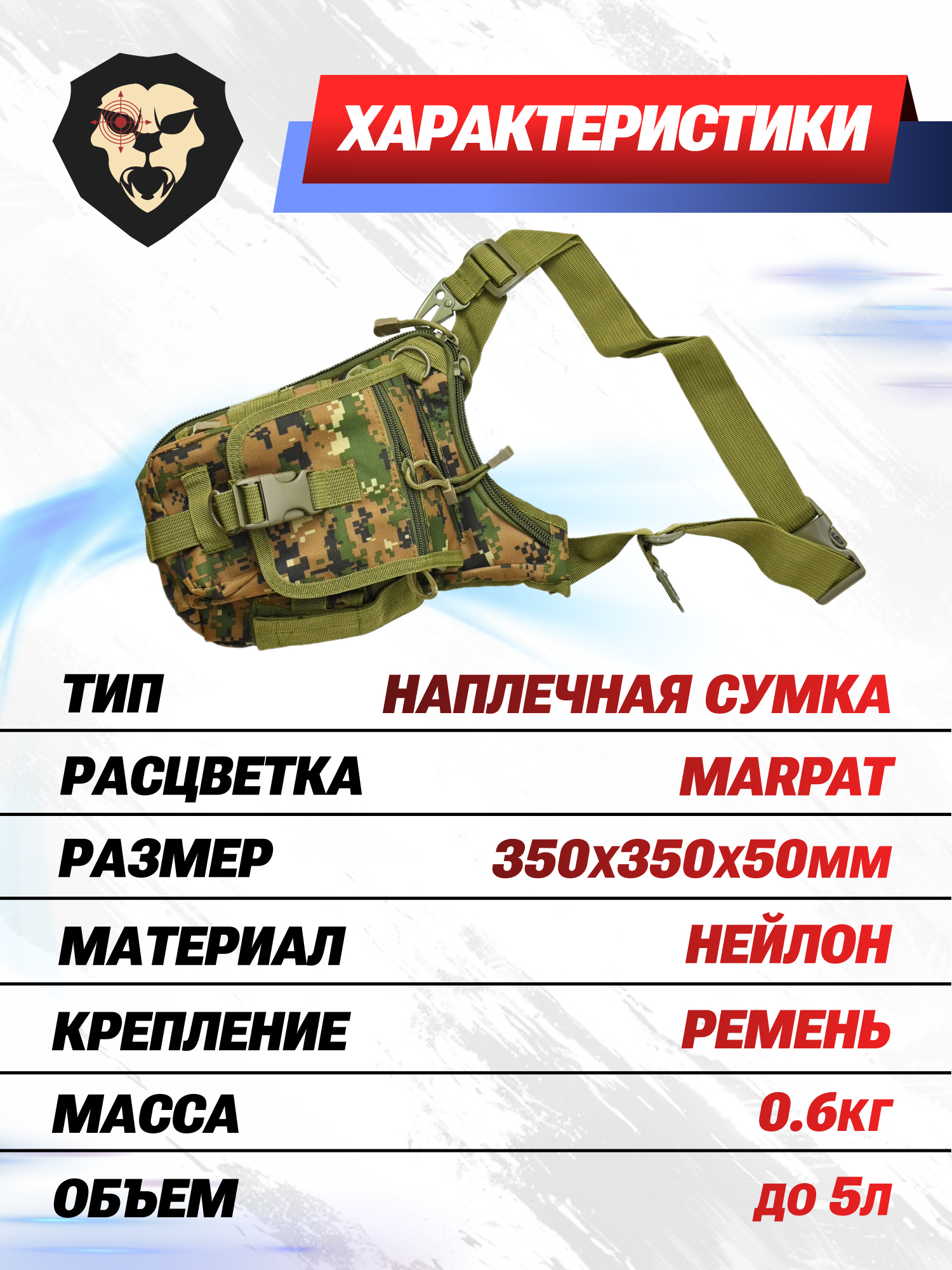 Информация о товаре "Сумка тактическая Brave Hunter PK142 (Marpat)" носит ознакомительный характер, и не является публичной офертой, определяемой положениями Статьи 437 Гражданского кодекса Российской Федерации, характеристики, внешний вид, цвет и комплектация могут быть изменены производителем без уведомления.