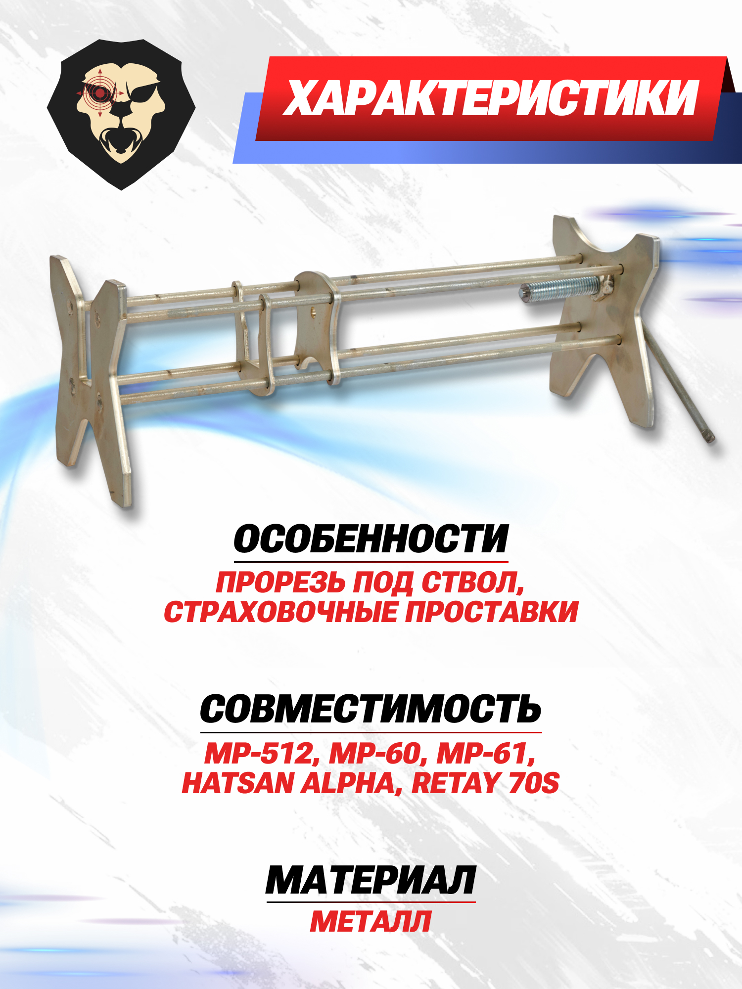 К числу таких изделий принадлежит описываемый съемник, разработанный для обслуживания пневматических платформ. Данное устройство производится брендом Arsenal из высокопрочного металла, что гарантирует устойчивость к чрезмерным физическим нагрузкам. Приспособление адаптировано для работы как с витыми пружинами, так и с газовыми - в конкретном случае представленный образец совместим с такими моделями винтовок как MP-512, MP-60, Хатсан Альфа, Ретей 70С, а также с технически схожими экземплярами от других производителей.