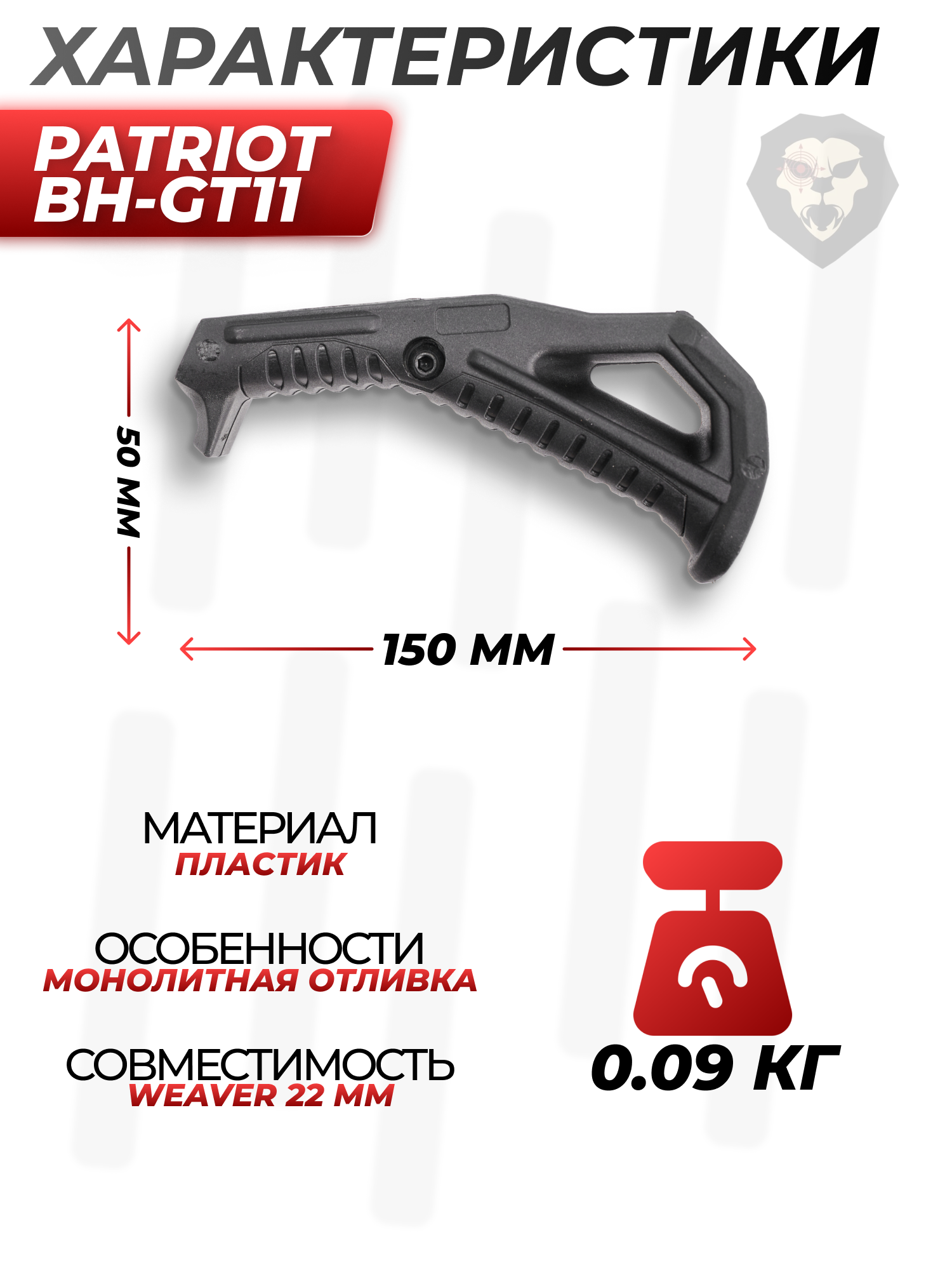 Информация о товаре "Тактическая рукоять Patriot BH-GT11 (Weaver)" носит ознакомительный характер, и не является публичной офертой, определяемой положениями Статьи 437 Гражданского кодекса Российской Федерации, характеристики, внешний вид, цвет и комплектация могут быть изменены производителем без уведомления.