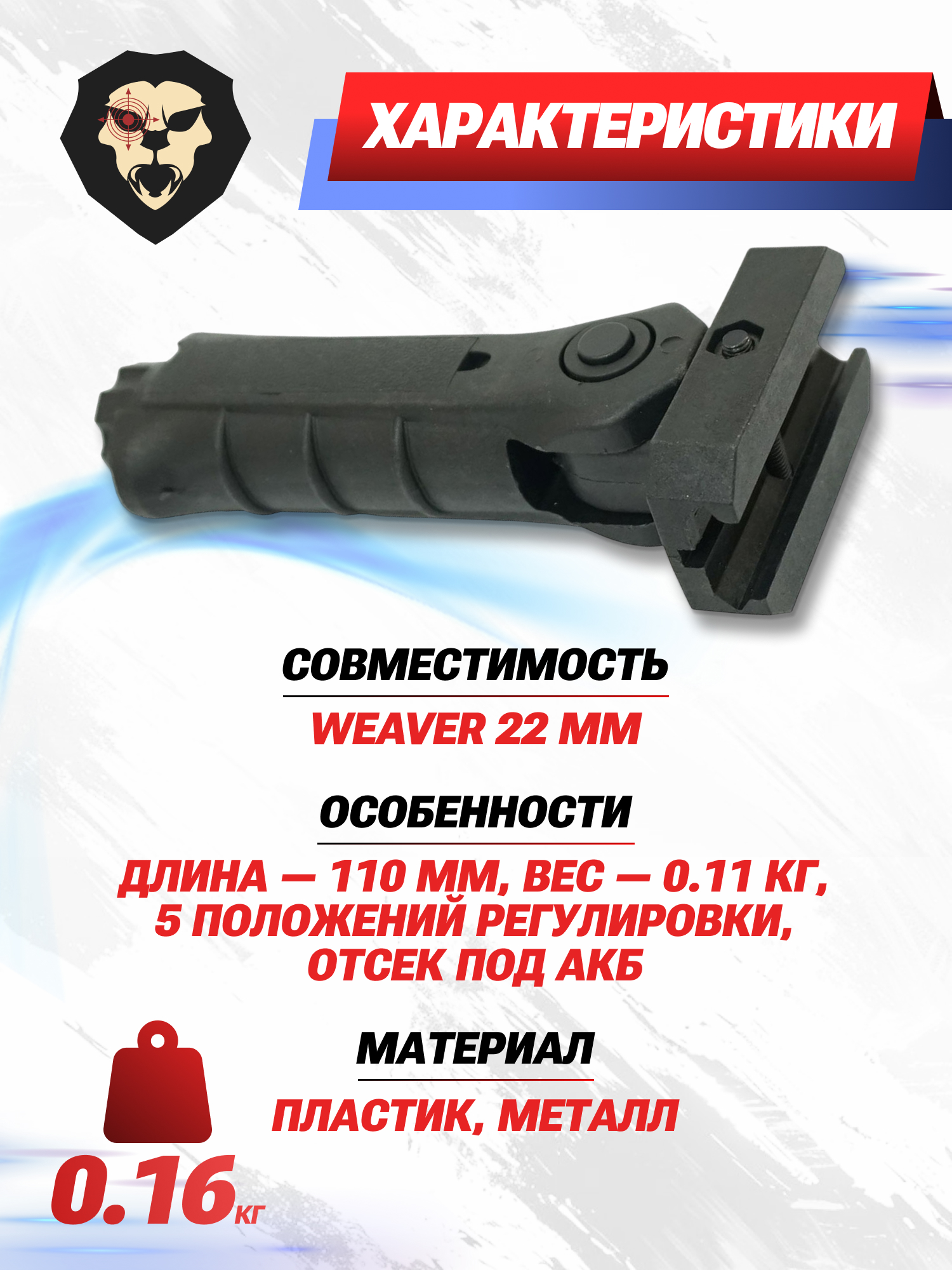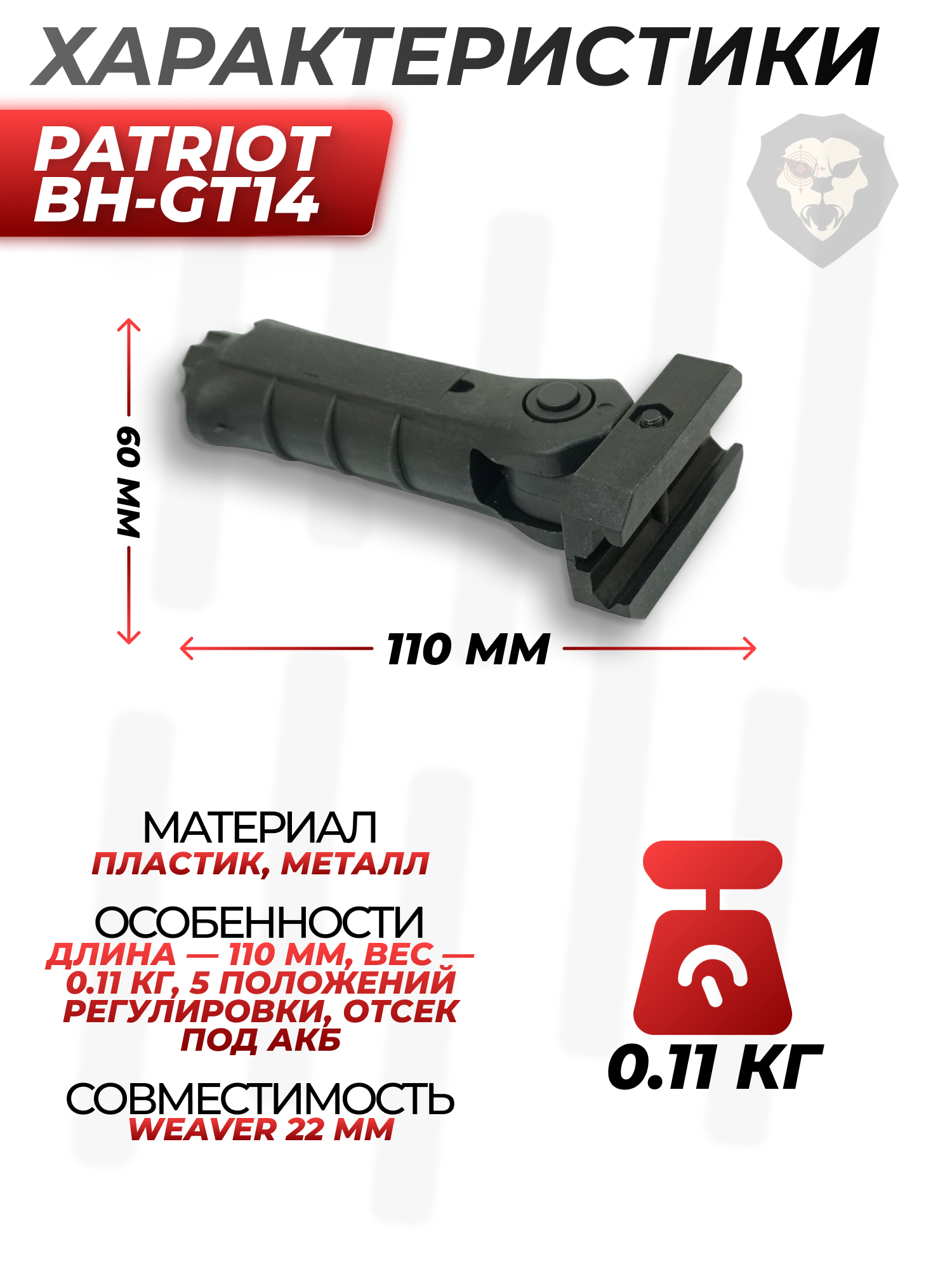 Информация о товаре "Тактическая рукоять Patriot BH-GT14 (Weaver)" носит ознакомительный характер, и не является публичной офертой, определяемой положениями Статьи 437 Гражданского кодекса Российской Федерации, характеристики, внешний вид, цвет и комплектация могут быть изменены производителем без уведомления.