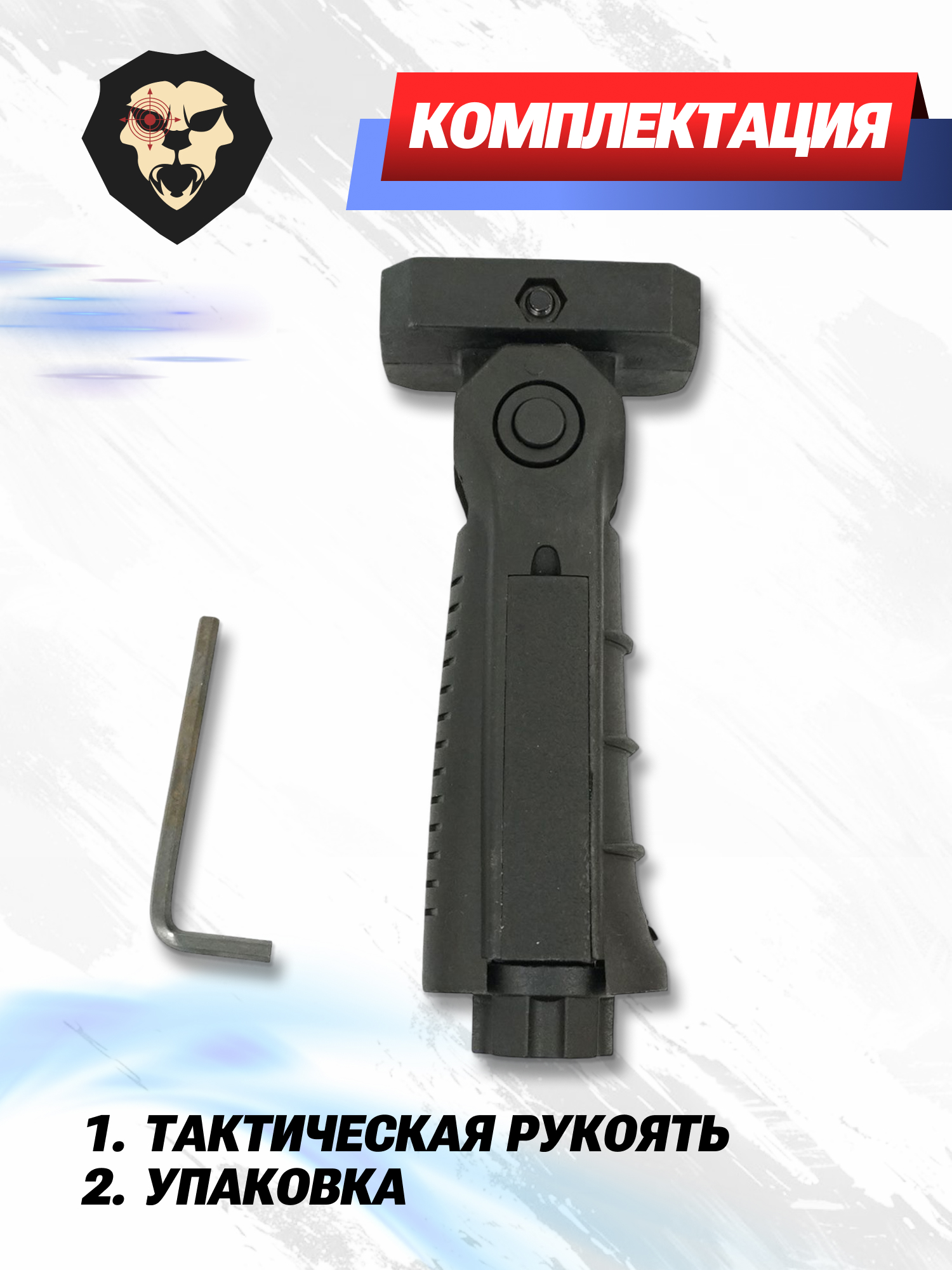 Тактическая рукоятка на цевье изготовлена из противоударного полимера. Внутренняя полость корпуса подразумевает функцию хранения малогабаритных предметов внутри себя — батареек, шестигранных ключей и иных запчастей.