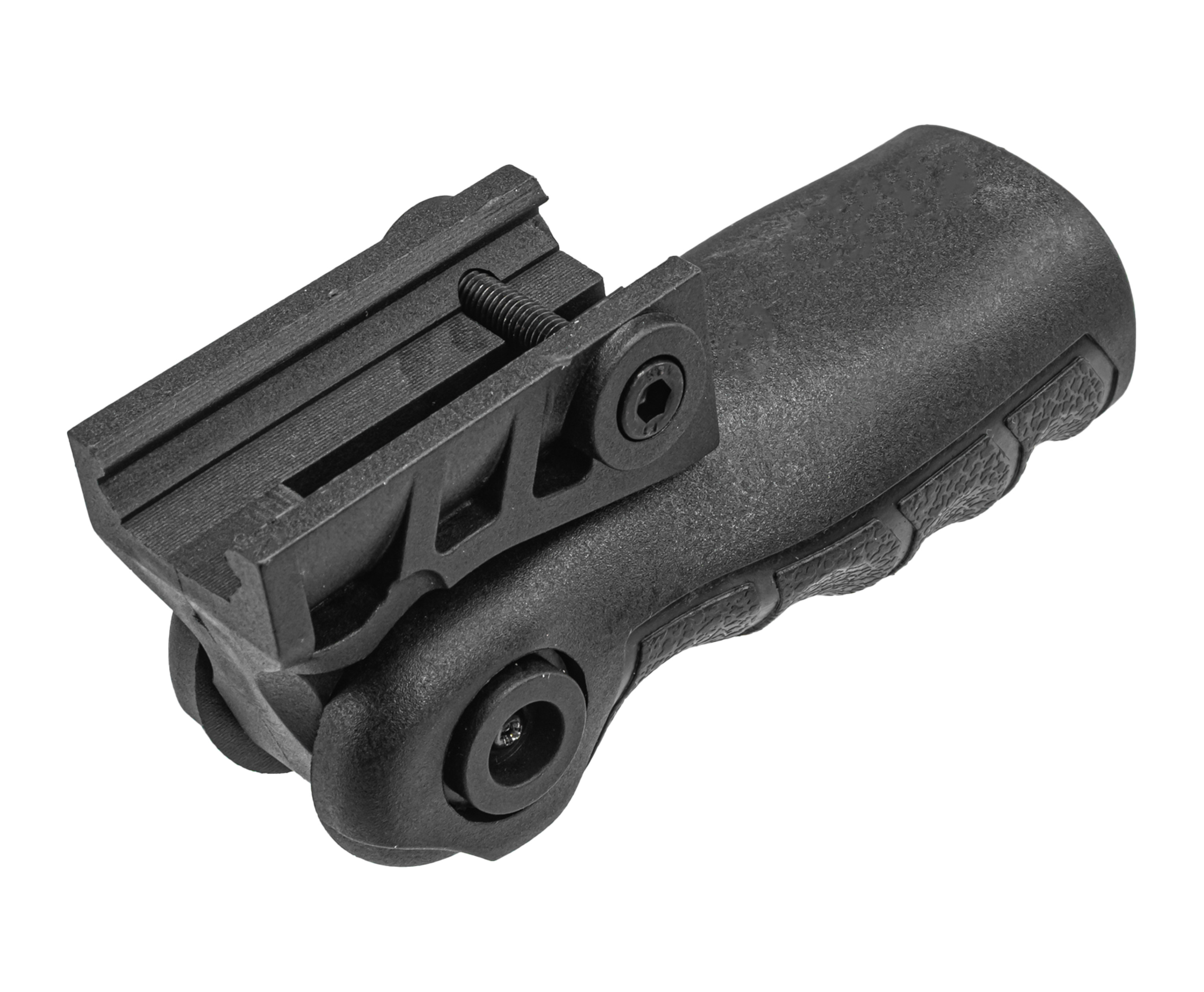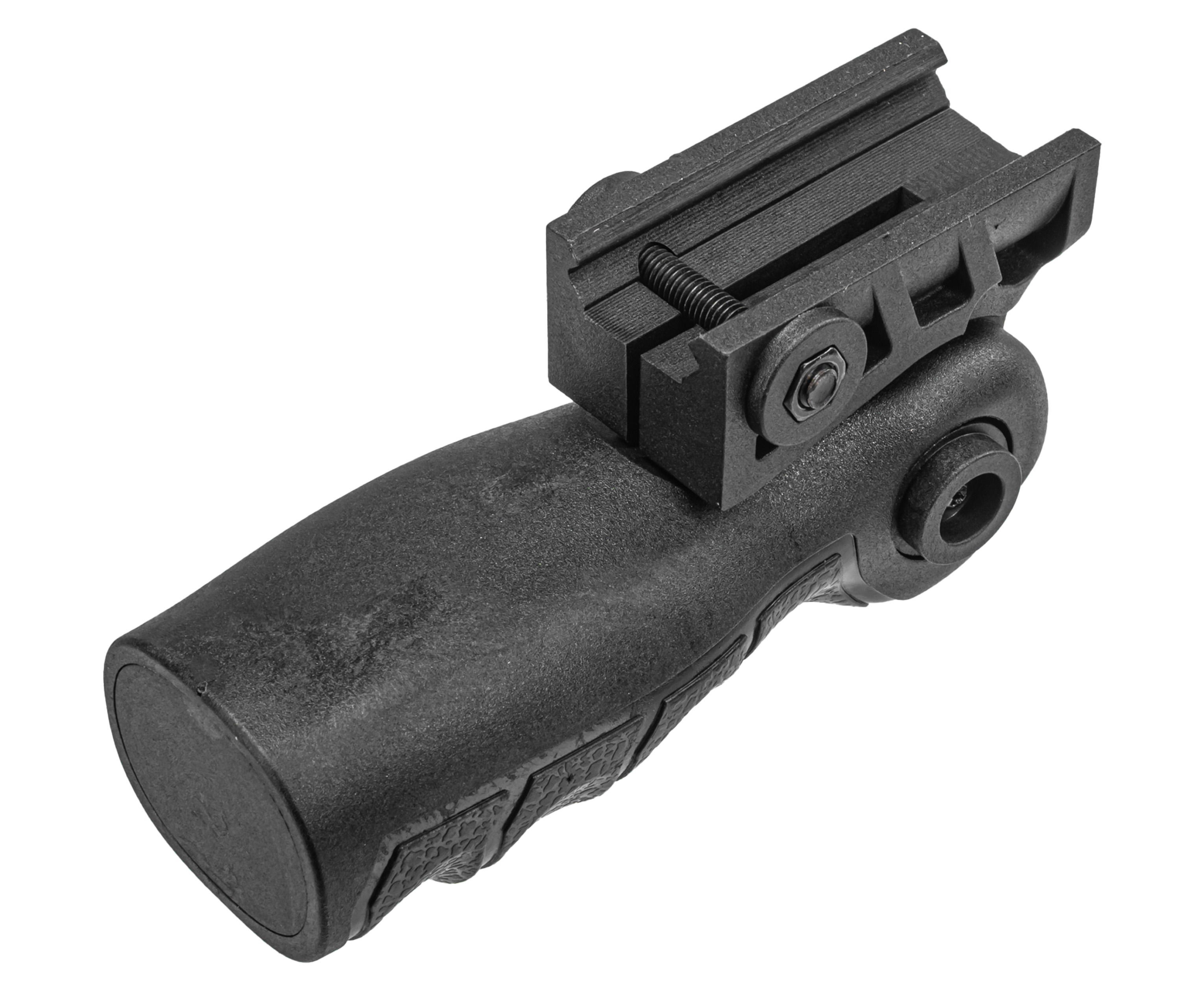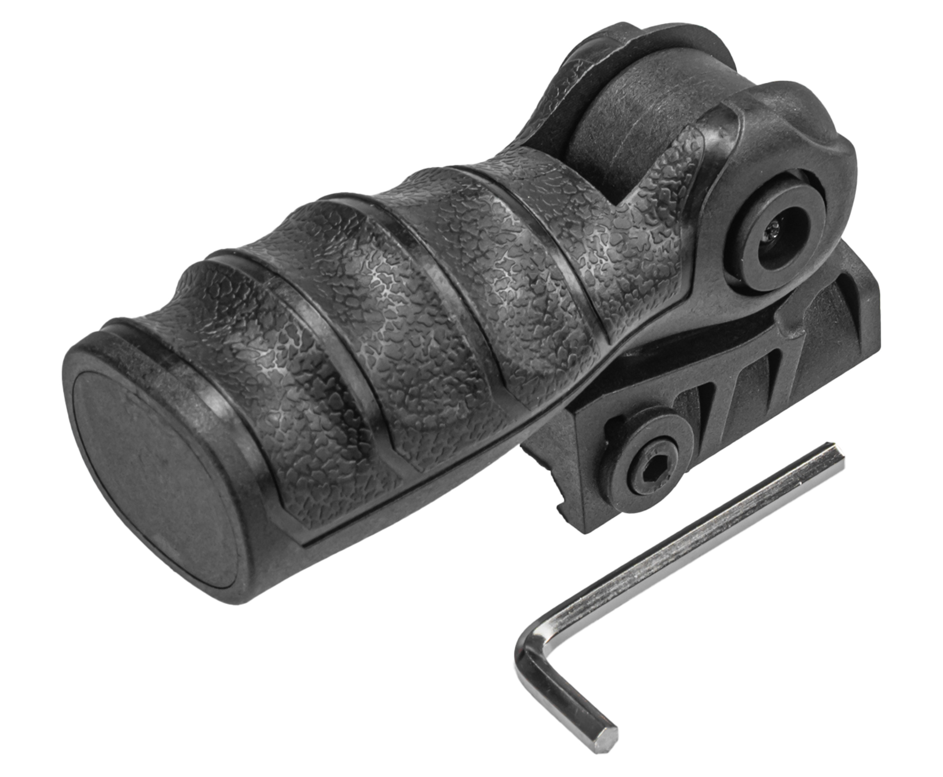 Новинкой в коллекции компании стала складная рукоятка для установки на планках с креплением Weaver и стыковочным пазом двадцать два миллиметра. Рассматриваемое приспособление предусматривает складывающийся трехпозиционный механизм, дающий настроить вертикальное и промежуточное положение в наклоне, а также сложить рукоятку для транспортировки или применения в роли упора.