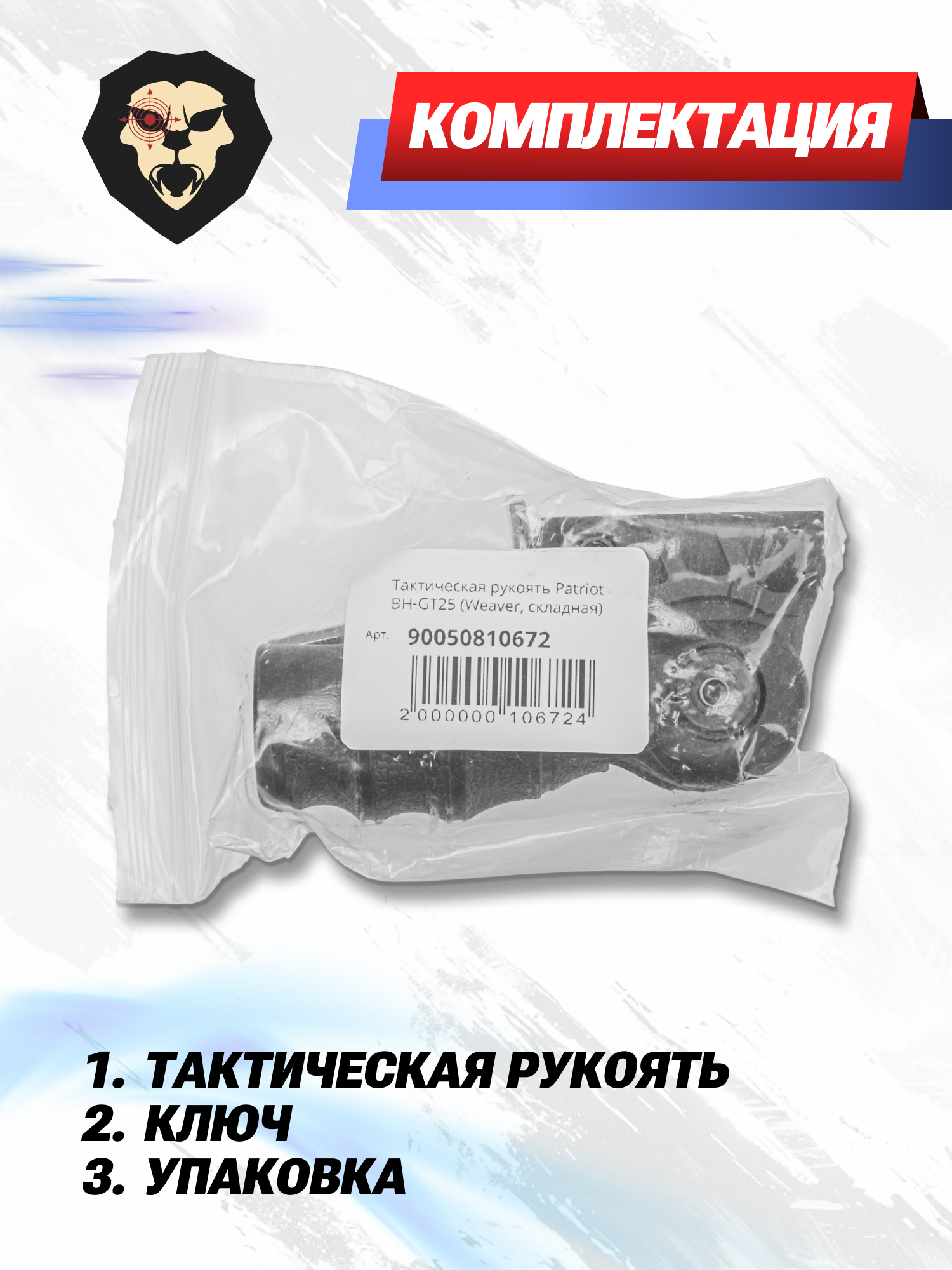 Артикул производителя BH-GT25 Тактическая рукоять Patriot BH-GT25 (Weaver, складная) по низкой цене 990 руб. Модель со штрихкодом производителя Вы можете оплатить наложенным платежем с доставкой или в отделении транспортной компании (ПЭК, СДЭК, Boxberry). Ваш заказ со штрихкодом 2000000106724 забрать на почте с оплатой при получении в любой части Российской Федерации.