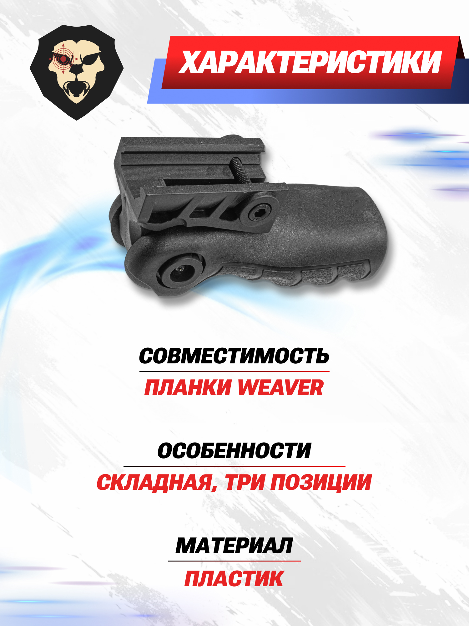 Информация о товаре "Тактическая рукоять Patriot BH-GT25 (Weaver, складная)" носит ознакомительный характер, и не является публичной офертой, определяемой положениями Статьи 437 Гражданского кодекса Российской Федерации, характеристики, внешний вид, цвет и комплектация могут быть изменены производителем без уведомления.