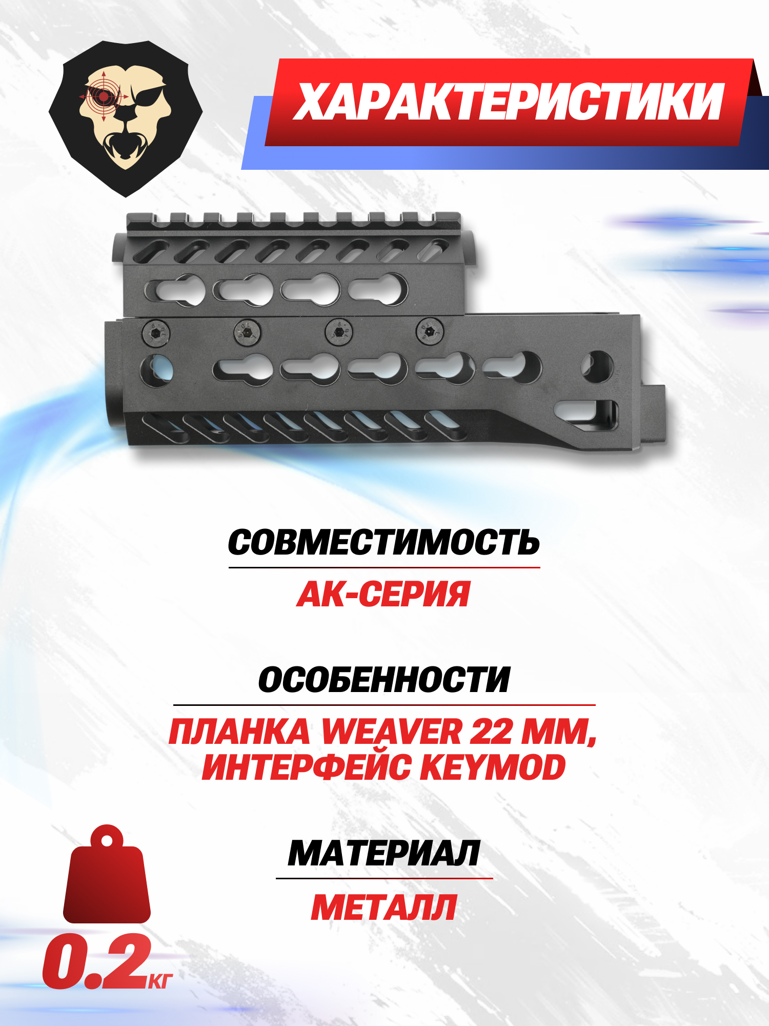 | Особенности | Планка Weaver 22 мм, интерфейс KeyMod |