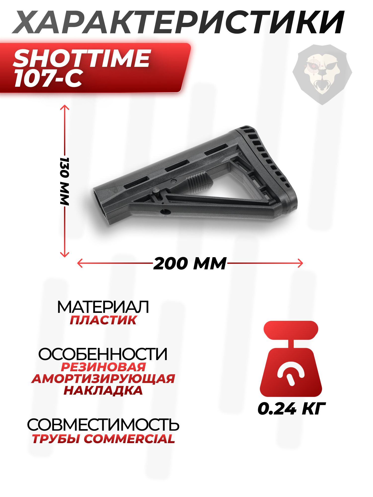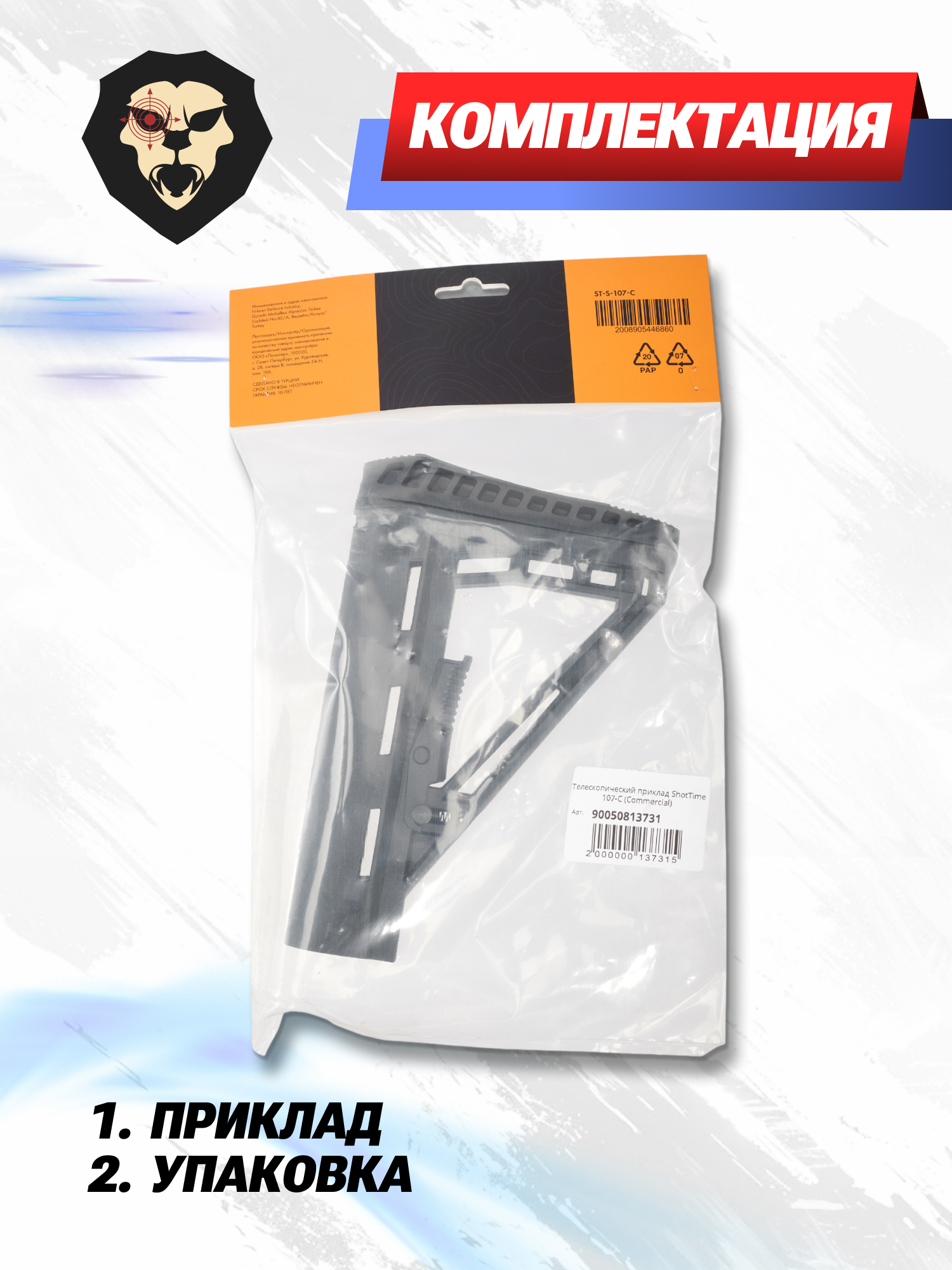Артикул производителя ST-S-107-C Телескопический приклад ShotTime 107-C (Commercial) по низкой цене 4490 руб. Модель со штрихкодом производителя Вы можете оплатить наложенным платежем с доставкой или в отделении транспортной компании (ПЭК, СДЭК, Boxberry). Ваш заказ со штрихкодом 2000000137315 забрать на почте с оплатой при получении в любой части Российской Федерации.