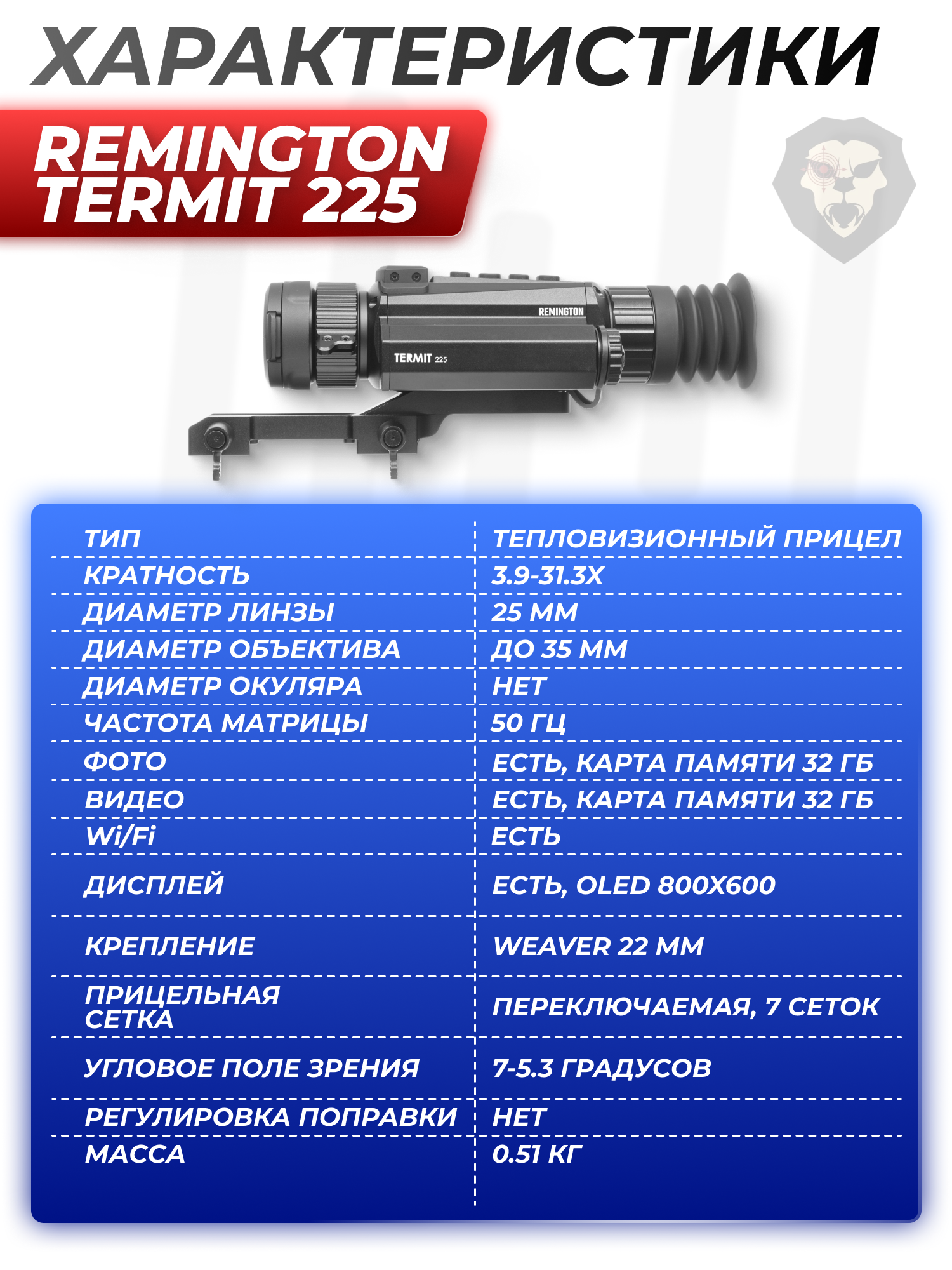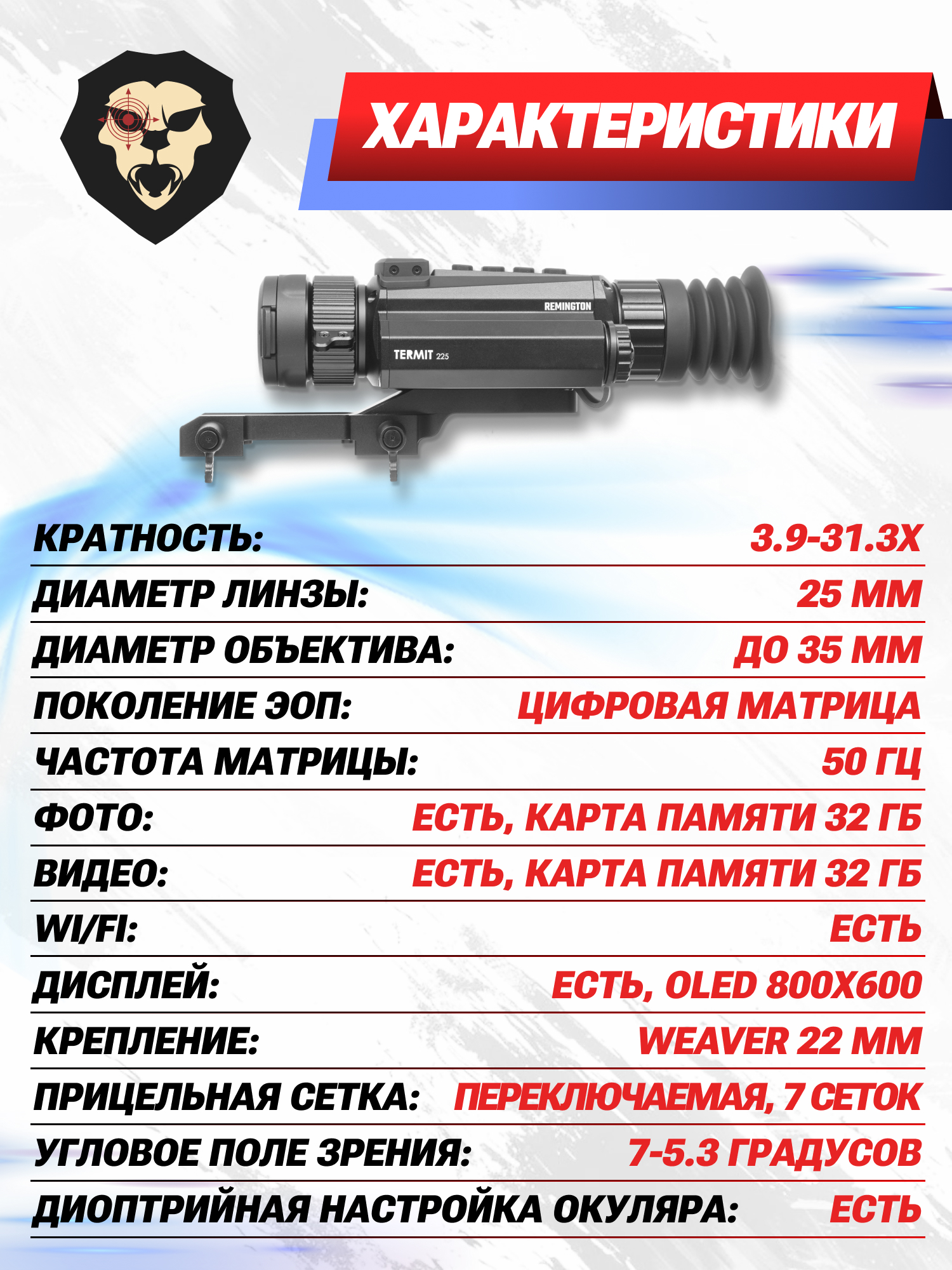Тепловизионный прицел Remington Termit 225 3.9-31.3x25 (Wi-Fi, 18650, USB, RT225) купить в интернет-магазине Popadiv10.