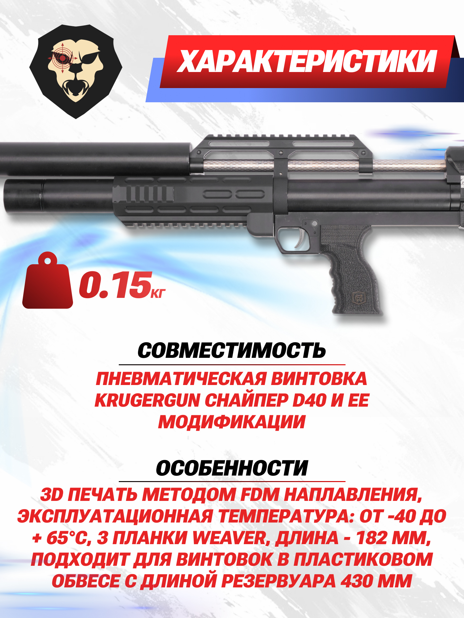| Совместимость | Пневматическая винтовка KrugerGun Снайпер D40 и ее модификации |