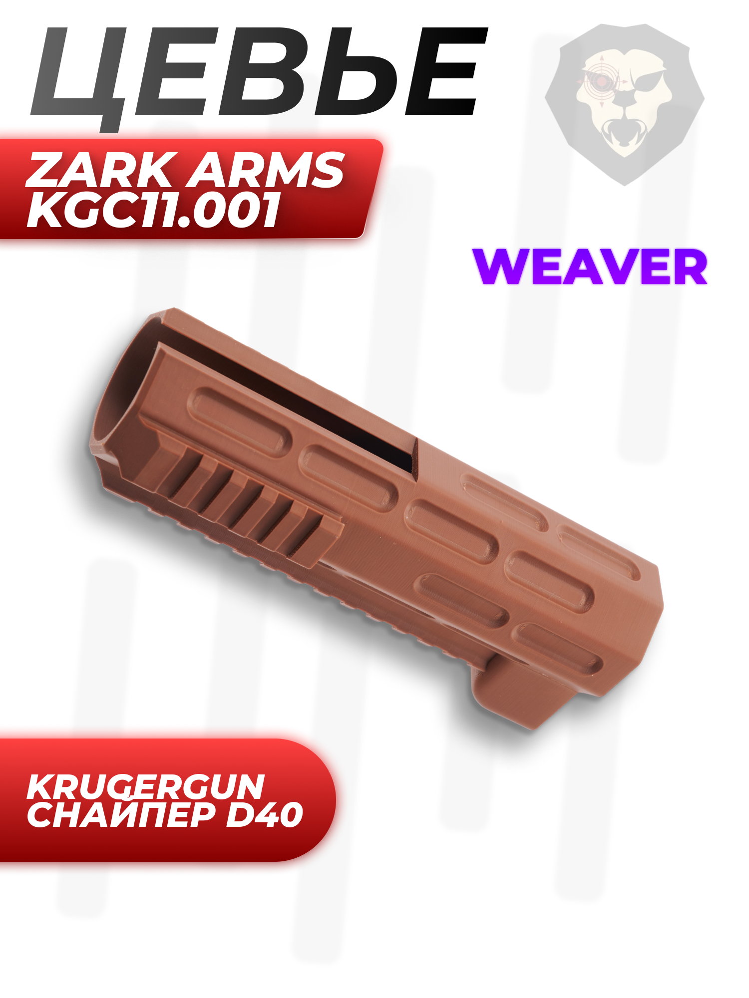 Артикул производителя SM-1476-A Цевье Zark Arms KGC11.001 для винтовки Krugergun Снайпер Bullpup D40 (коричневое, Weaver, 182 мм, резервуар 430) по низкой цене 3490 руб. Модель со штрихкодом производителя Вы можете оплатить наложенным платежем с доставкой или в отделении транспортной компании (ПЭК, СДЭК, Boxberry). Ваш заказ со штрихкодом 2000000165943 забрать на почте с оплатой при получении в любой части Российской Федерации.