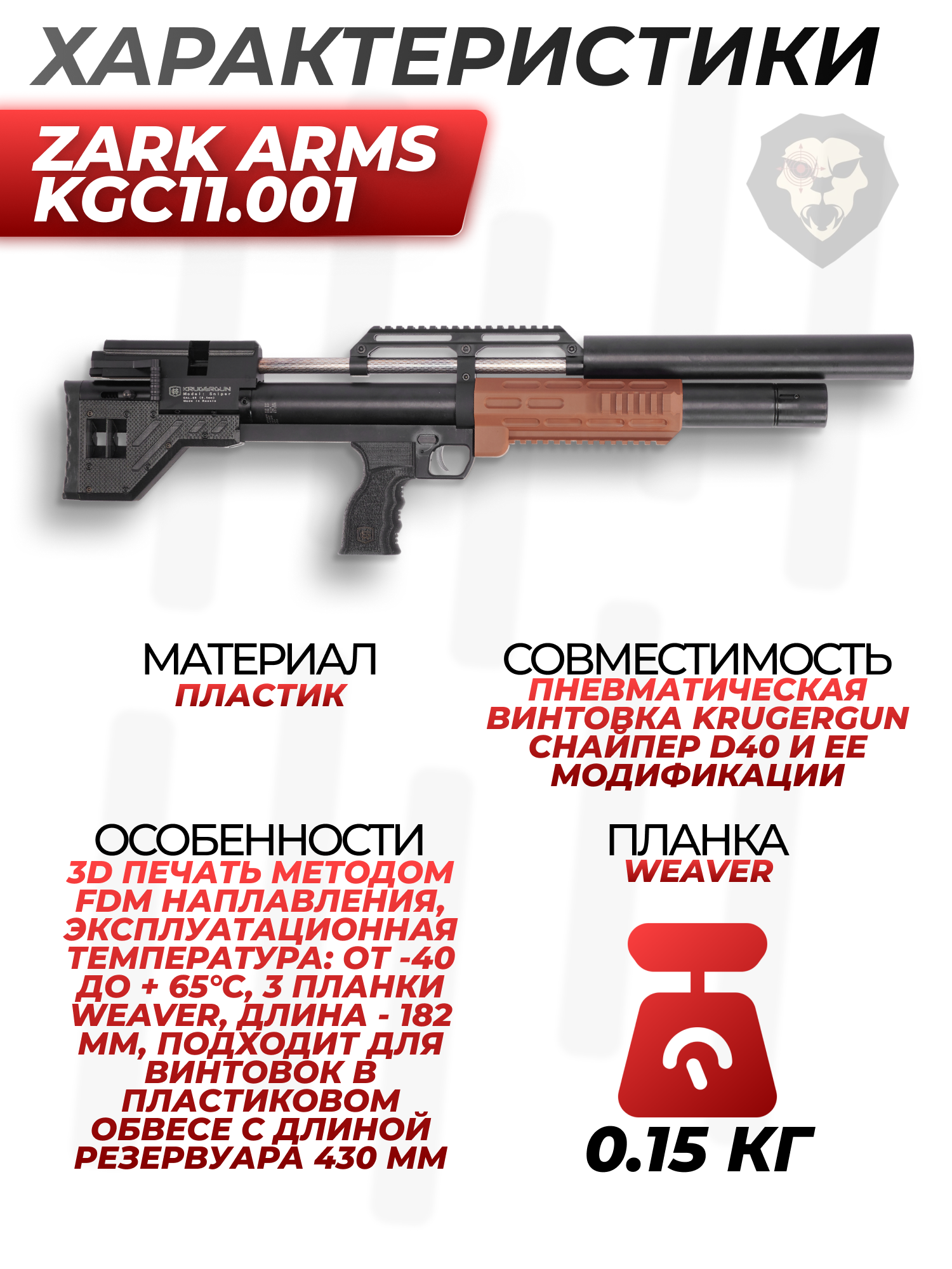 | Совместимость | Пневматическая винтовка KrugerGun Снайпер D40 и ее модификации |