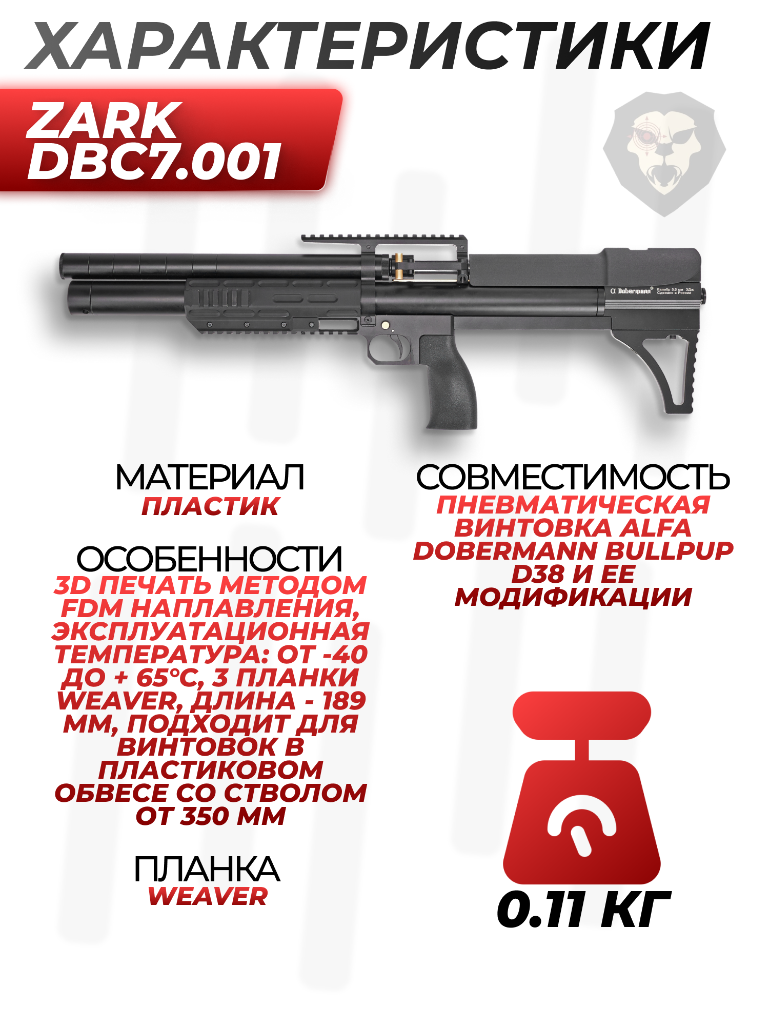 Цевье Zark DBC7.001 для винтовки Alfa Dobermann 350 BullPup (Weaver, черное, D38, 18.9 см) купить в интернет-магазине Popadiv10.