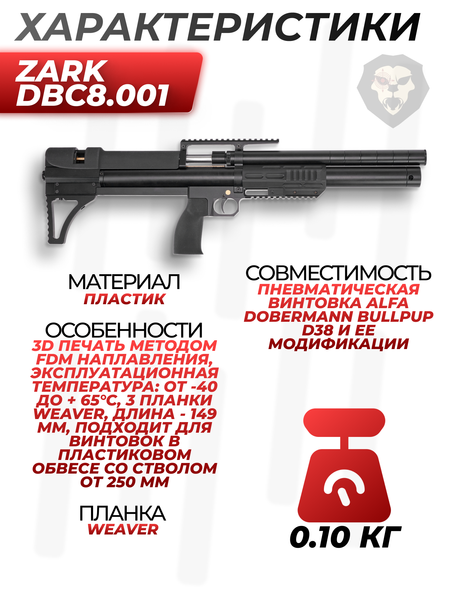 Совместимость | Пневматическая винтовка Alfa Dobermann BullPup D38 и ее модификации |