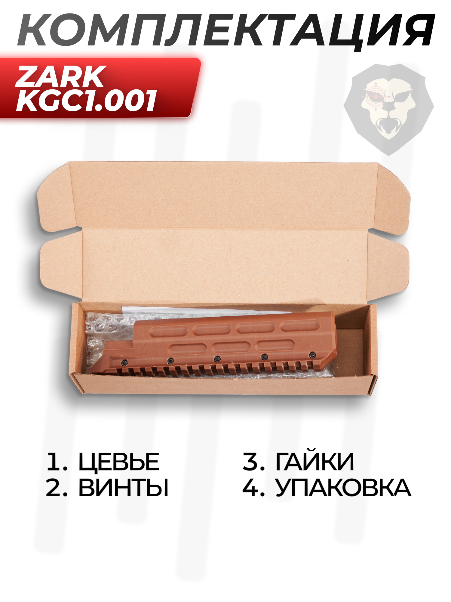 Комплект Zark KGC1.001 ставится поверх ресивера и прижимается пятью винтами с гайками. Крепеж входит в набор, однако соответствующий ключ будущий владелец подбирает самостоятельно. При корректном монтаже накладки не люфтят и плотно удерживаются на оружии, образуя рельсовую базу с 18-ю слотами под размещение фонарей или ЛЦУ, а также другого желаемого тактического оснащения.