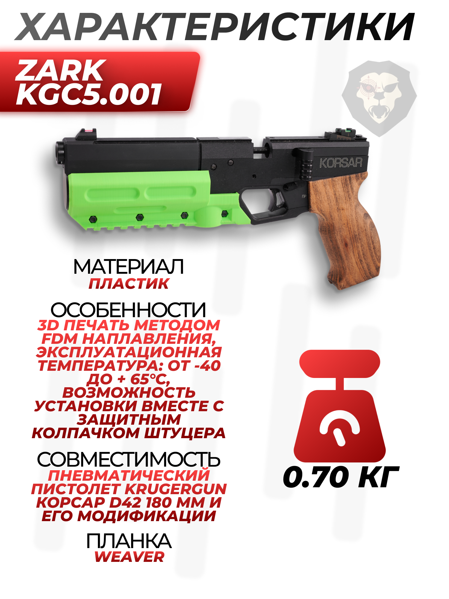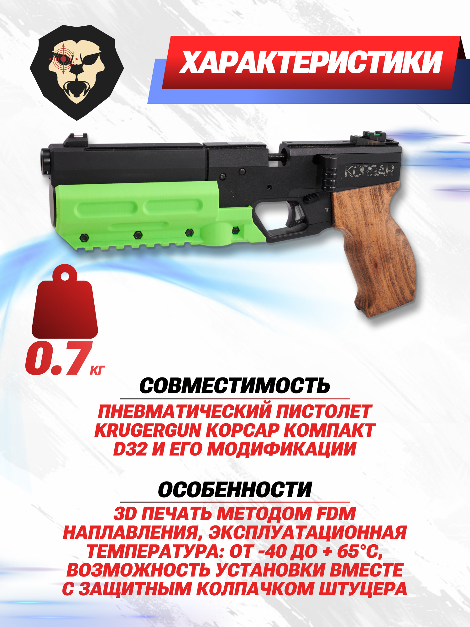 | Совместимость | Пневматический пистолет Krugergun Корсар Компакт D32 и его модификации |