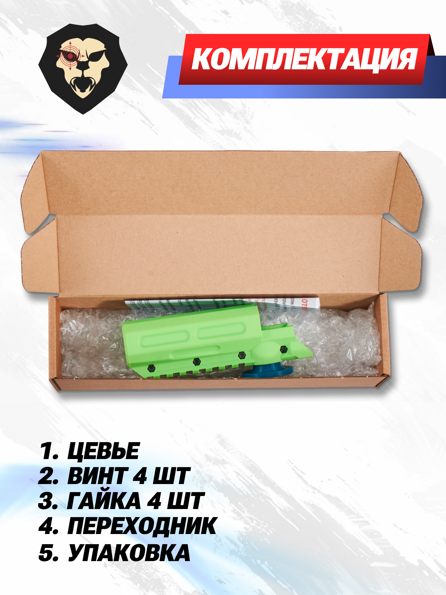 | Комплектация | Цевье, винт - 4 шт, гайка - 4 шт, переходник для заправки, упаковка |