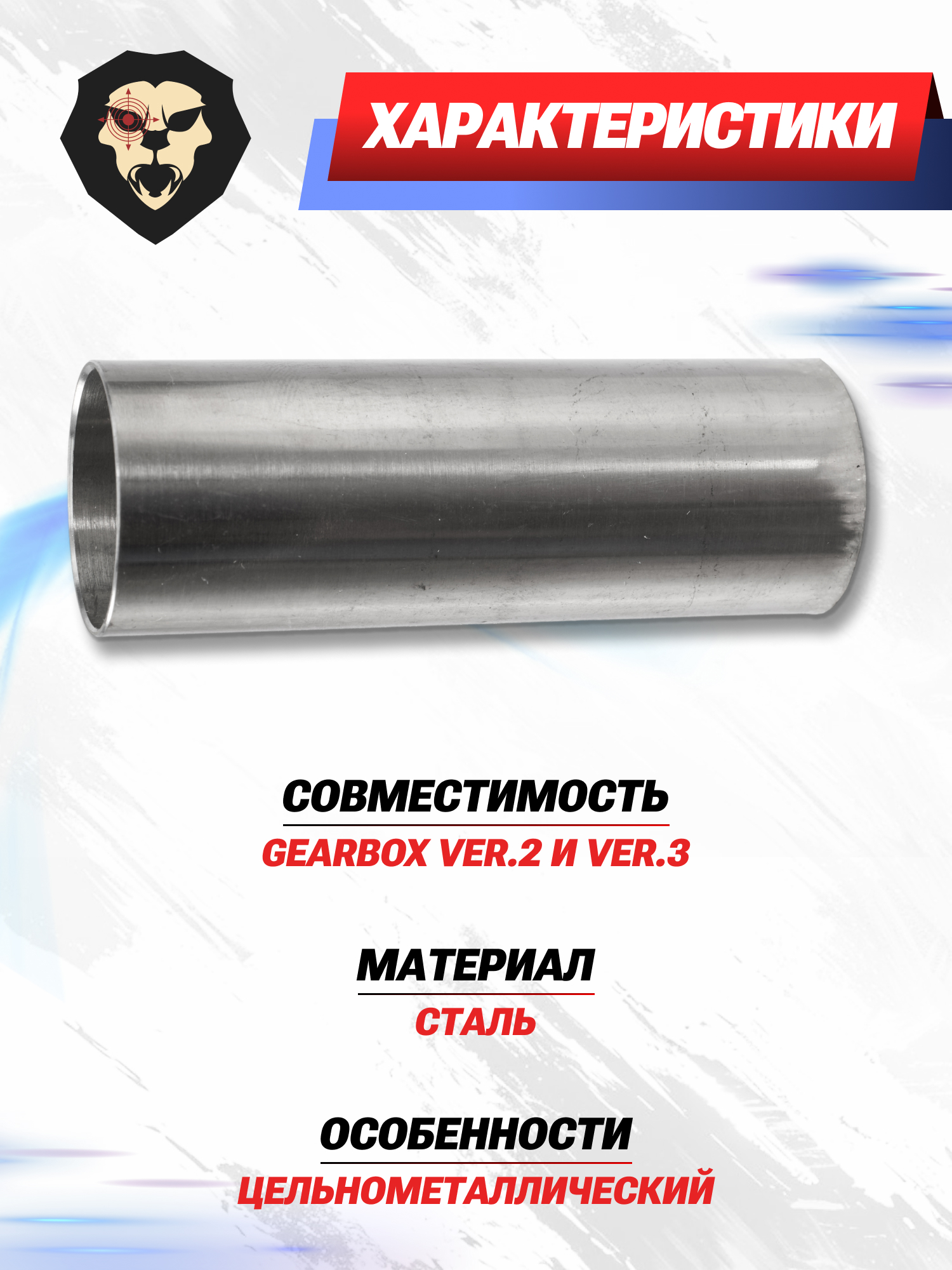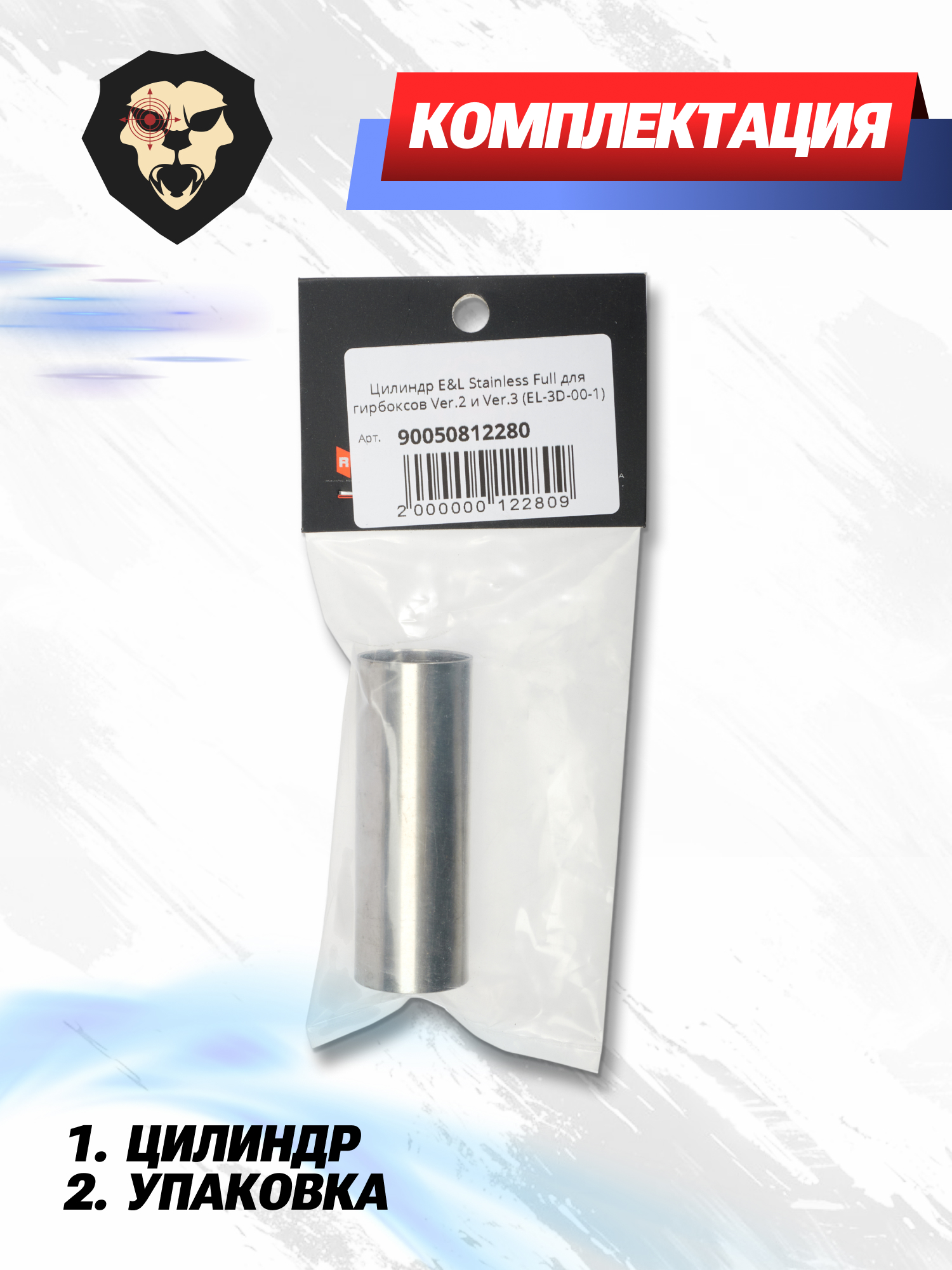 Бренд E&L, специализирующийся на изготовлении страйкбольного оружия, в том числе выпускает всевозможные ЗИП комплекты и элементы тюнинга для него. Рассматриваемое изделие представляет собой стальной цилиндр универсального типа, устанавливающийся в гирбоксы второй и третий серии, благодаря чему он подойдет как для автоматов АК-серии, так и М-серии, а также схожих по конструкции изделий.