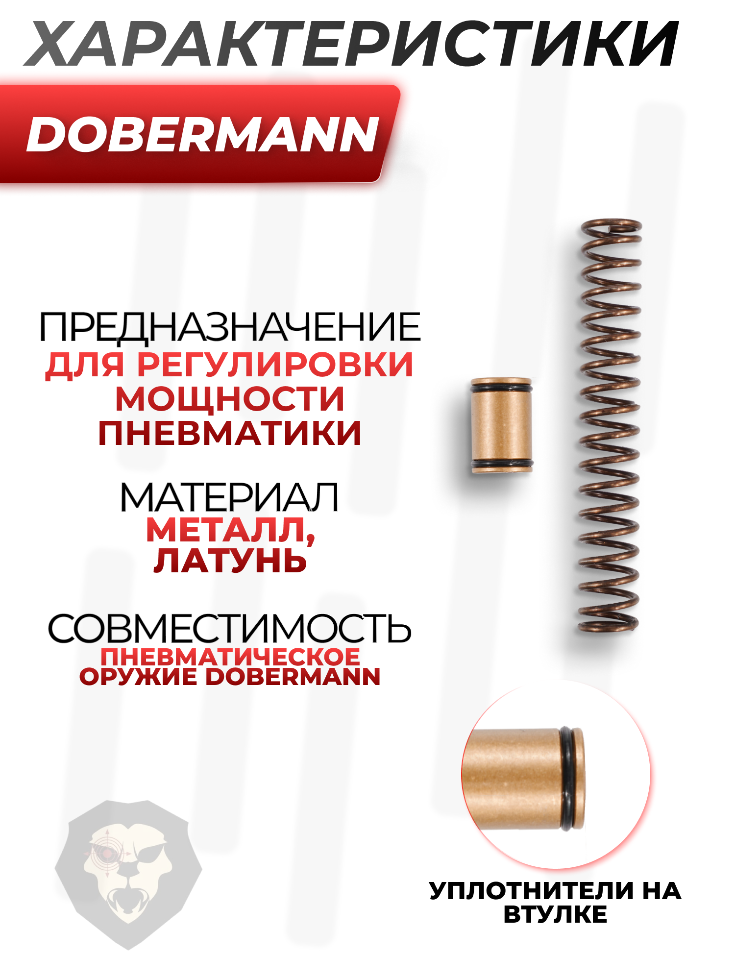 Для моделей серии Dobermann PCP предусмотрен специальный комплект, включающий в себя втулку с резиновыми уплотнениями и пружину. В совокупности с регулировкой проходных значений он позволит внести правки по натяжению и весу отдельных узлов.