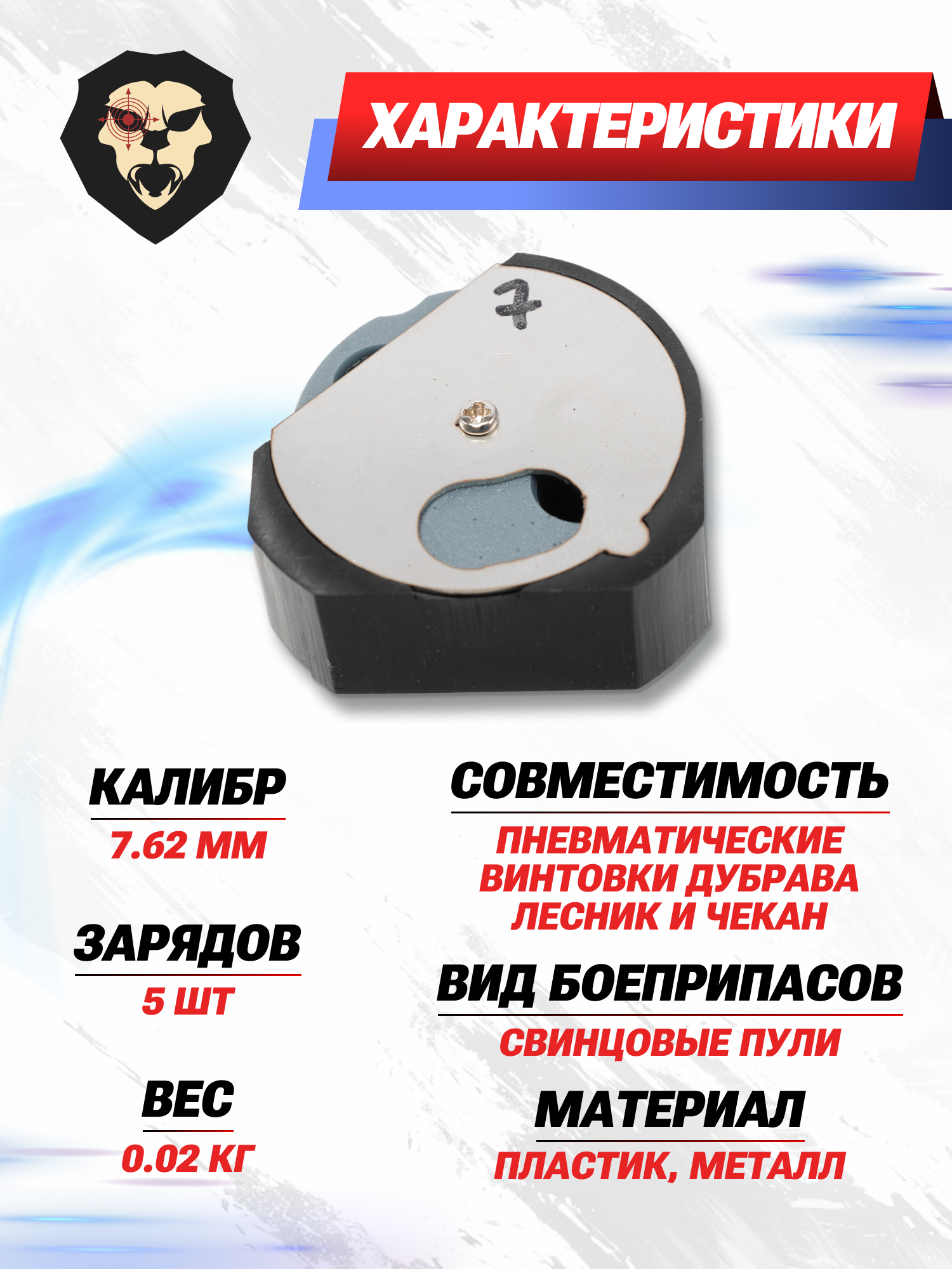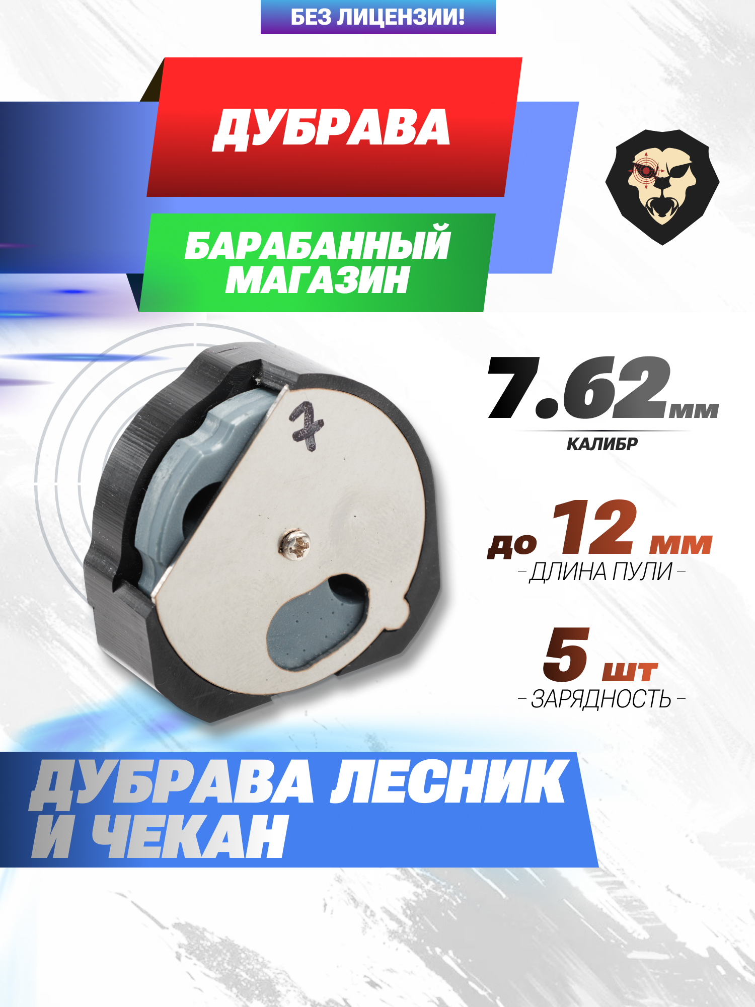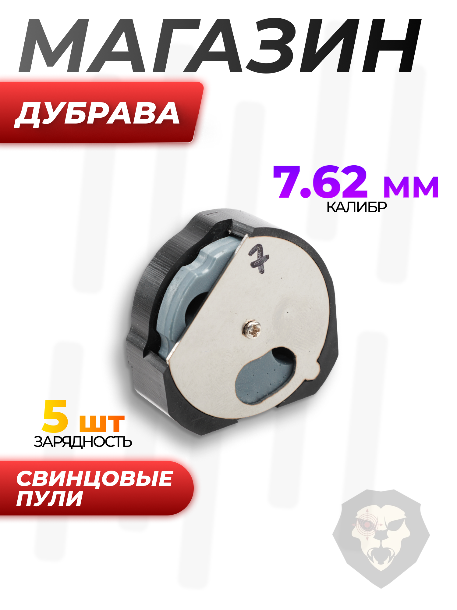 Информация о товаре "Барабанный магазин Дубрава 7.62 мм (5 пуль, универсальный)" носит ознакомительный характер, и не является публичной офертой, определяемой положениями Статьи 437 Гражданского кодекса Российской Федерации, характеристики, внешний вид, цвет и комплектация могут быть изменены производителем без уведомления.