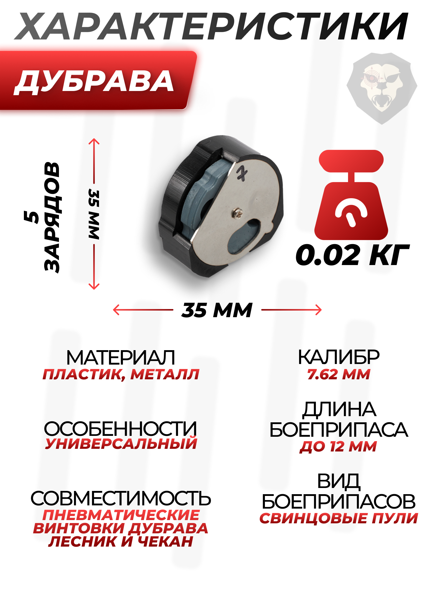 | Совместимость | Пневматические винтовки Дубрава Лесник и Чекан |