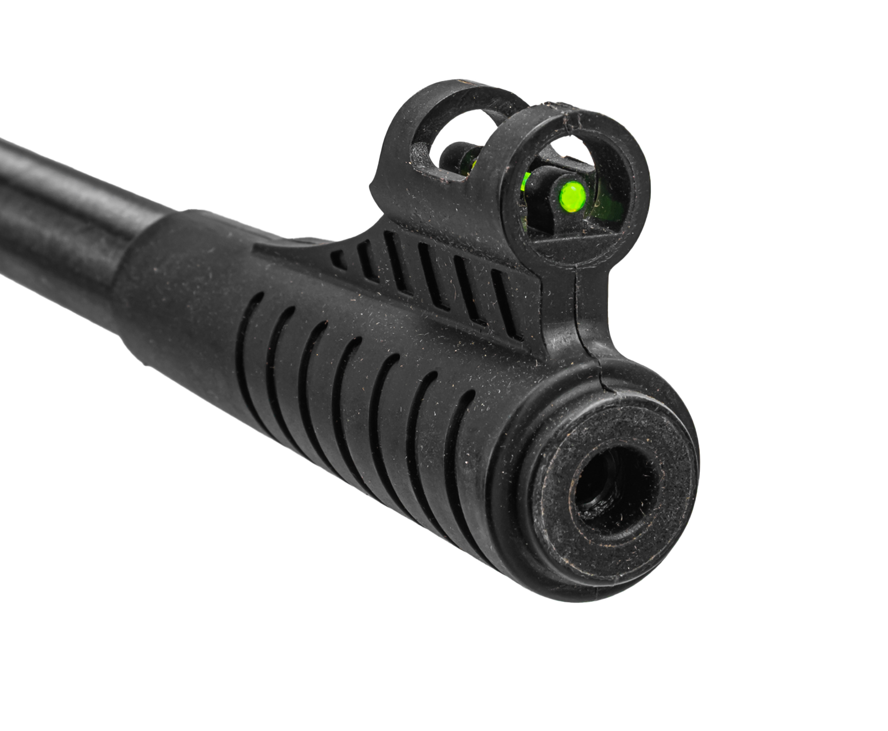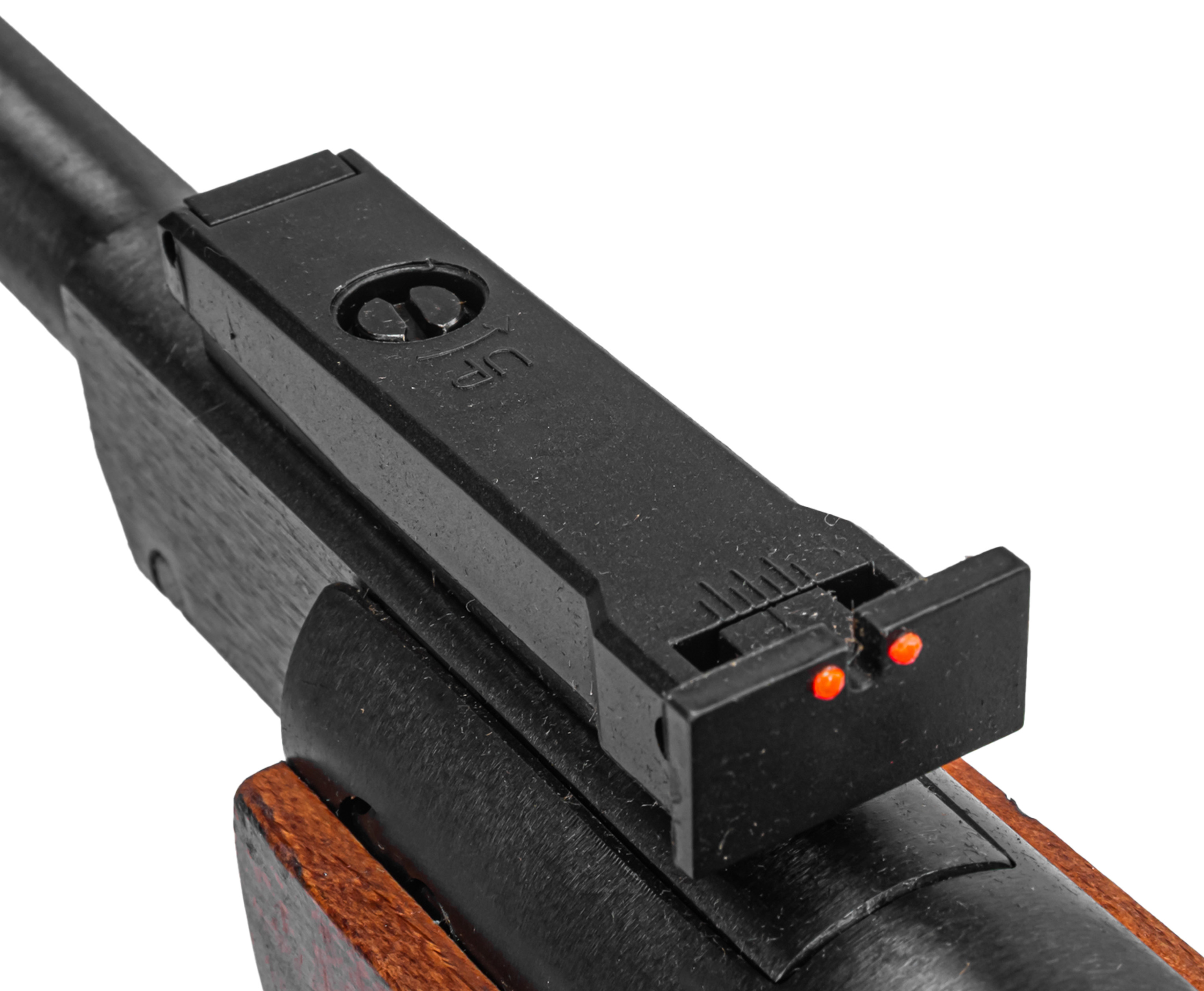 Сам ствол имеет длину 485 мм и характеризуется наличием мушки и целика у дульного среза и казенника соответственно. Механические приспособления оформлены светоотражающими вставками из фибергласса, что повышает их заметность и упрощает наведение. Вдобавок к указанному допускается установка оптики на кольцах, совместимых с направляющими пазами планки «Ласточкин хвост» 11 мм.